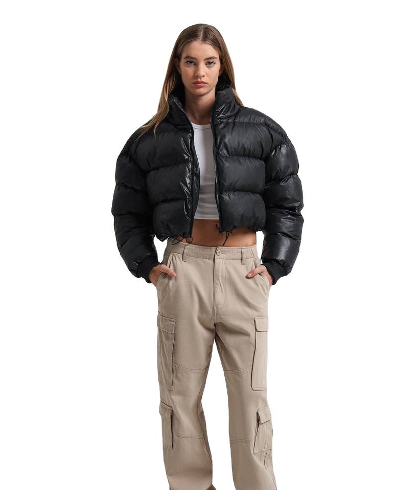 เสื้อแจ็กเก็ตพัฟเฟอร์ครอปสำหรับผู้หญิง