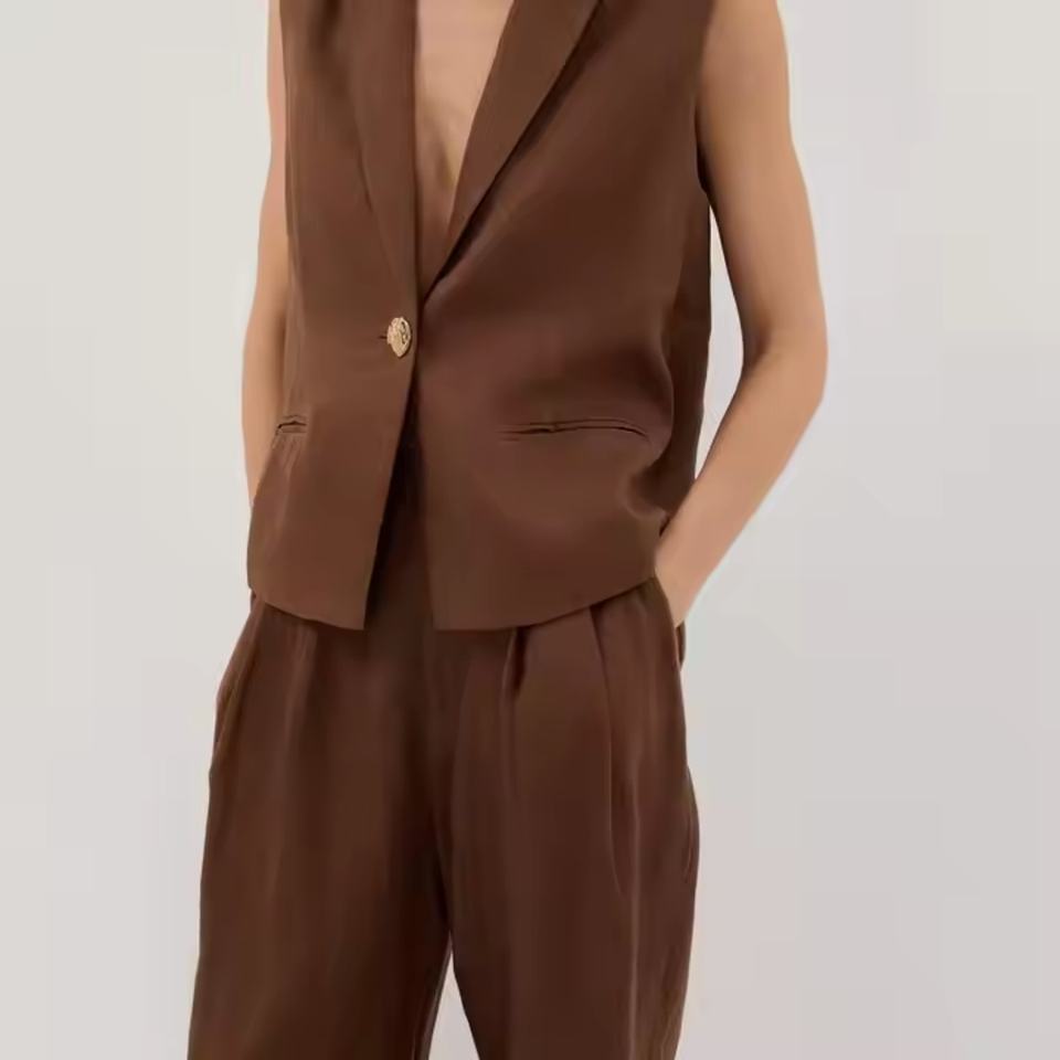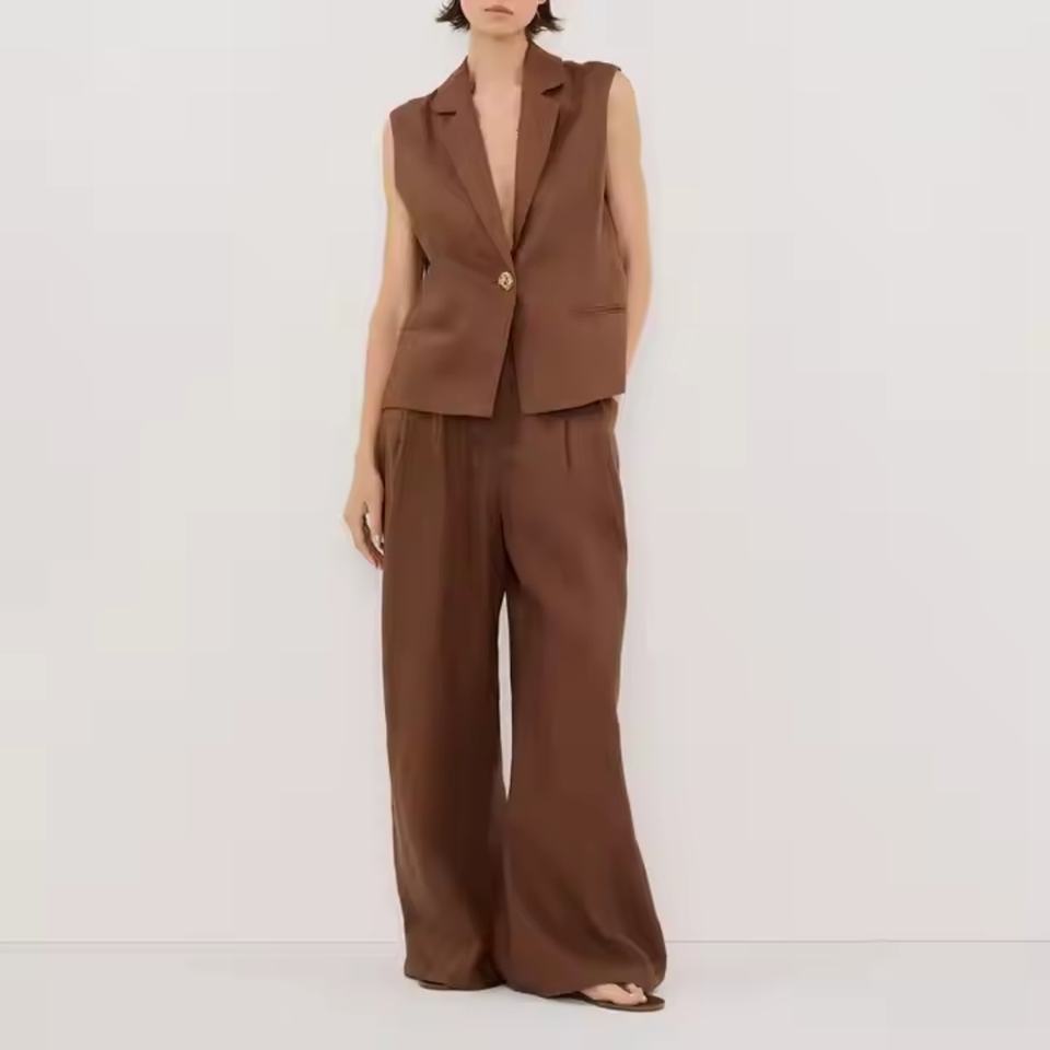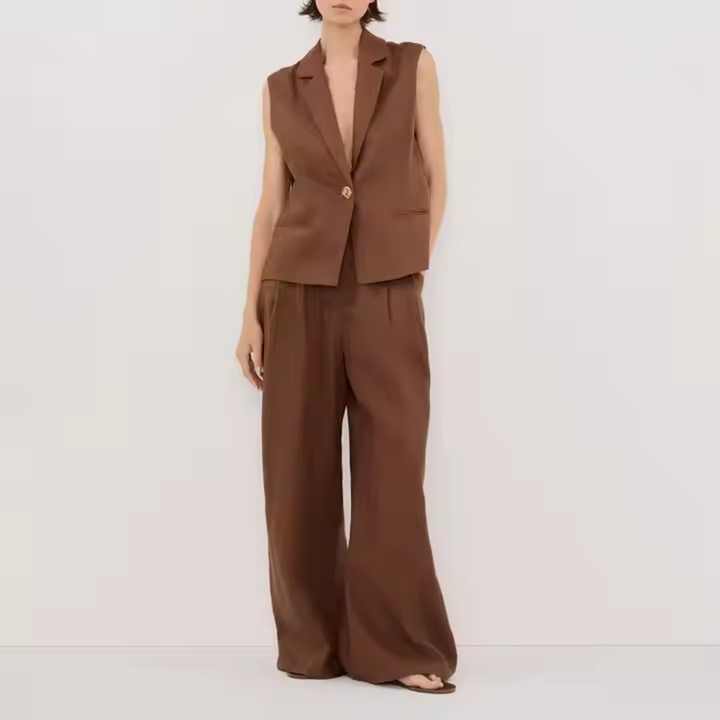 ชุดลำลองผ้าลินินสำหรับผู้หญิง คอลเลคชั่นใหม่ OEM เสื้อแขนกุดสั้นและกางเกงขายาวทรงกว้าง ผ้าลินิน 100%