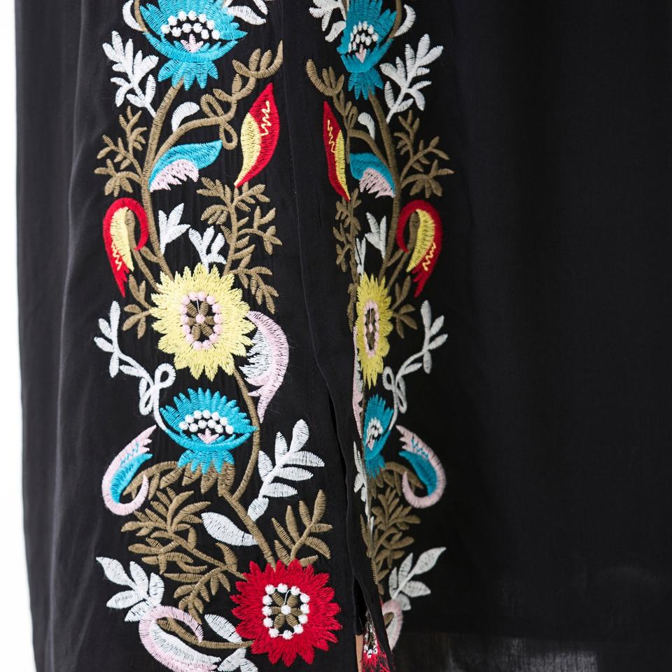 เดรสยาวลำลองผู้หญิง ลายปักดอกไม้ ผ้าฝ้าย OEM สีดำ ไซส์ใหญ่ เอวธรรมชาติ แฟชั่น