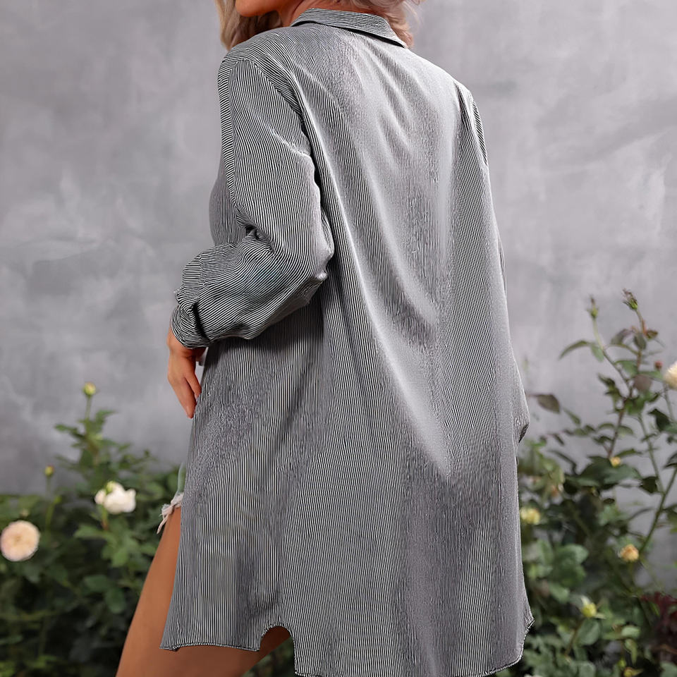 เสื้อเบลาส์แขนยาวลำลองสำหรับผู้หญิง คอตั้ง แต่งกระดุม ผ้าทอโพลีเอสเตอร์ผสมไหม ระบายอากาศได้ดี ไซส์ XL สำหรับฤดูใบไม้ผลิ/ฤดูร้อน เหมาะสำหรับใส่ทำงาน