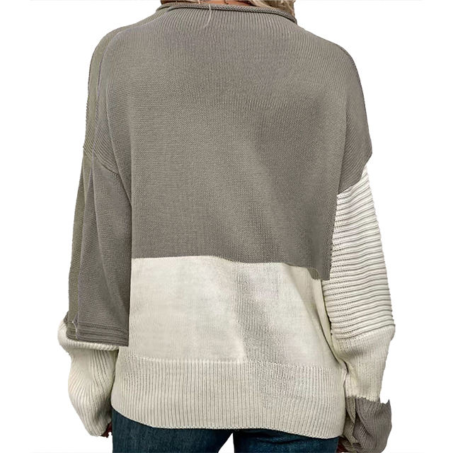 เสื้อสเวตเตอร์ไหมพรมลำลองสำหรับผู้หญิง สไตล์ฤดูใบไม้ร่วง ทรงหลวม พิมพ์ลายบล็อกสี โลโก้ด้านหน้า แขนยาว คอกลม ผลิตจากไนลอน/อะคริลิก