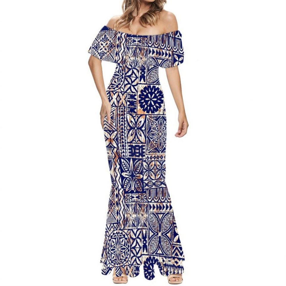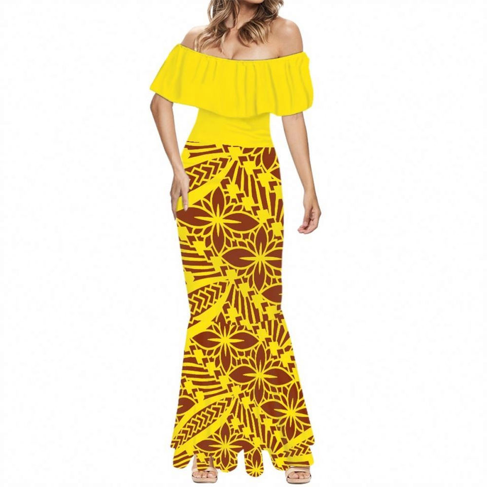 เดรสยาวลำลองสำหรับผู้หญิง แขนสั้น ลายดอกไม้ ทรงเมอร์เมด สไตล์เดรสยาวแบบเม็กซิกัน