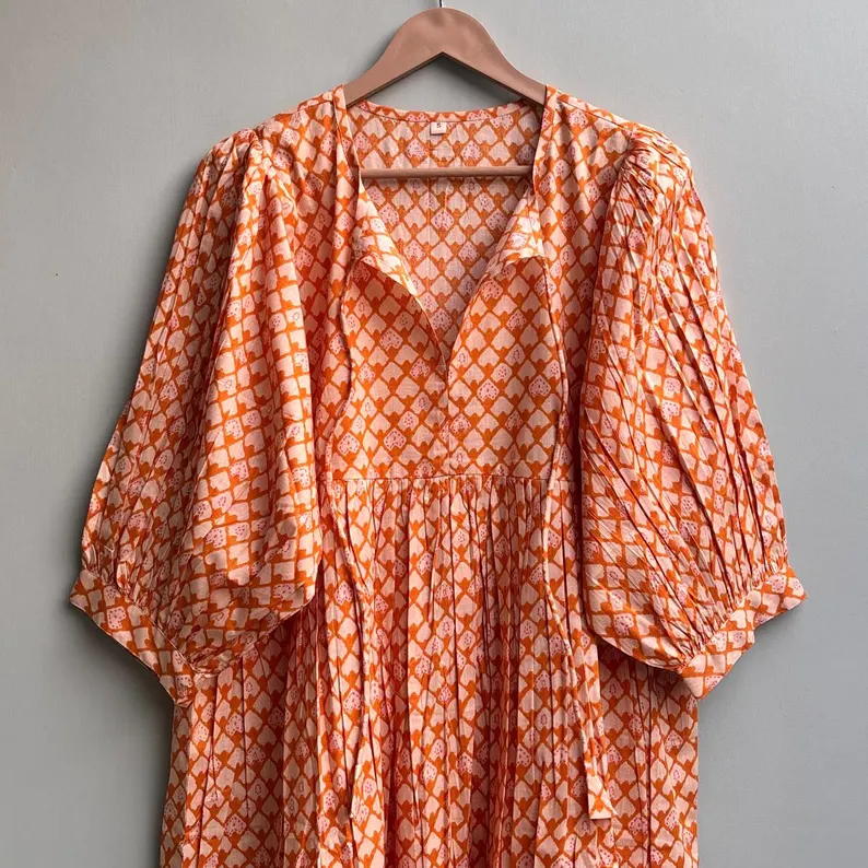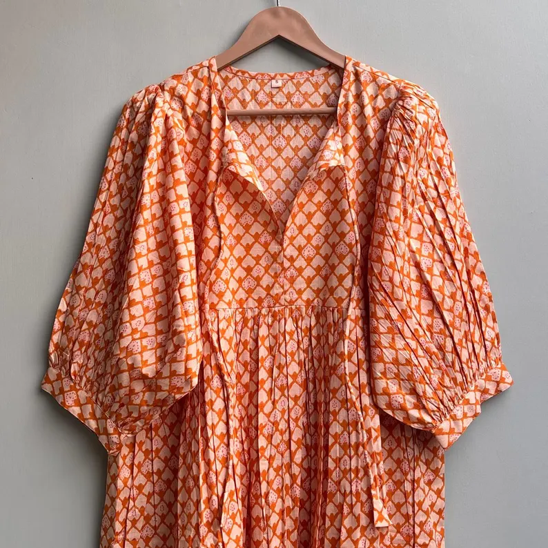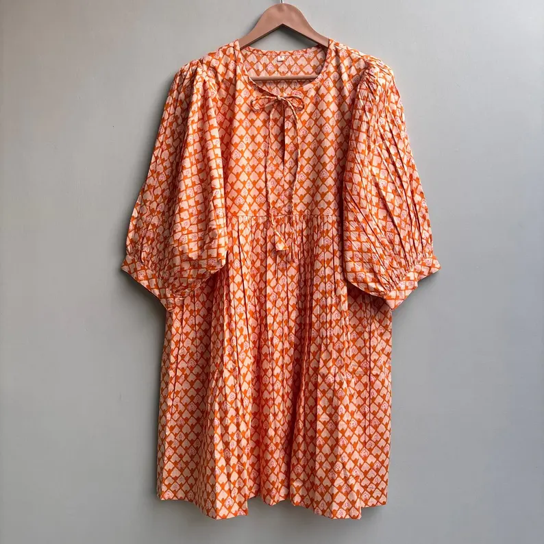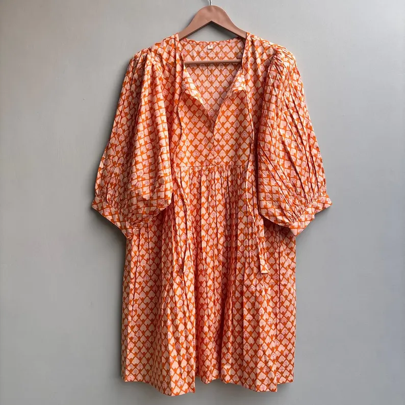 เดรสลำลองผู้หญิง ผ้าทอ 100% คอตตอน สีพื้น/เรียบ แขนสั้น เอวทรงเอ็มไพร์ ทรงเบบี้ดอลล์ โอเวอร์ไซส์ คอวี ทรงหลวม ใส่ได้ทุกวัน