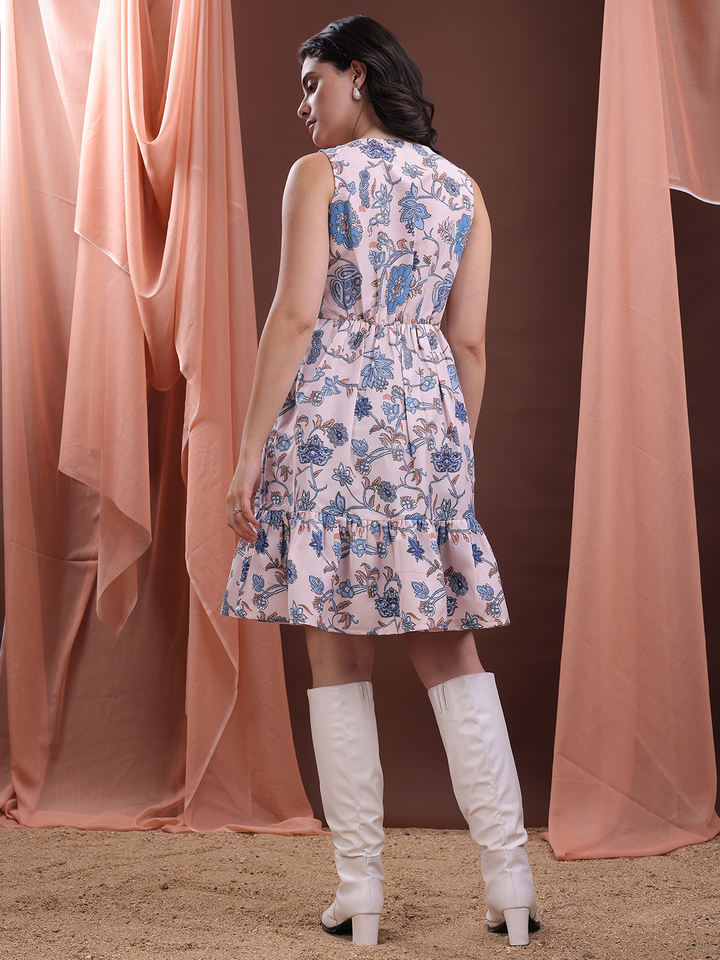 เดรสทรงพอดีตัวคอวีแขนยาวสั้นลำลองของผู้หญิง