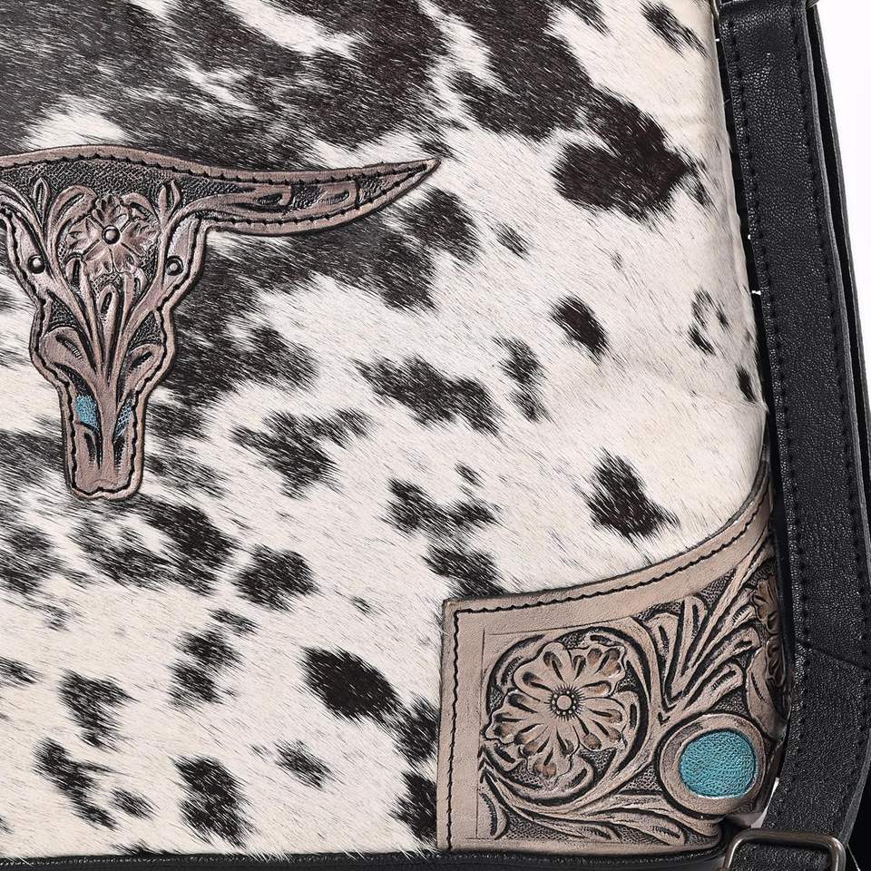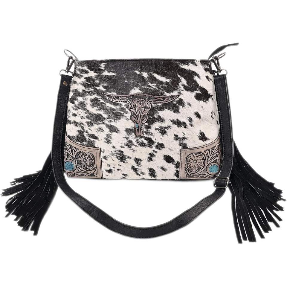 กระเป๋าถือสตรีหนังวัวธรรมชาติลำลองพร้อมสายรัดที่ถอดออกได้และของตกแต่งลายทาง