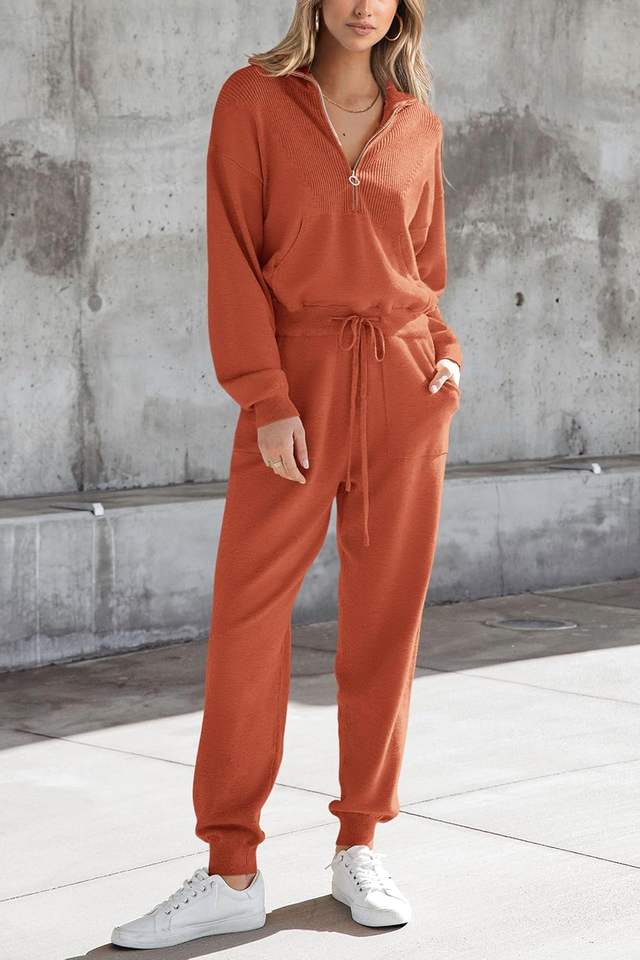ชุด2ชิ้นเสื้อสเวตเตอร์ผ้าแคนวาสแบบลำลองสำหรับผู้หญิงกางเกงวอร์มแบบสวมหัวมีซิปประดับกระดุม