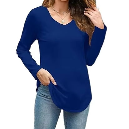เสื้อยืดคอวีลำลองสำหรับผู้หญิง100% ผ้าฝ้ายเนื้อนุ่มระบายอากาศใส่สบายสไตล์ & สวมใส่สบายทุกวัน