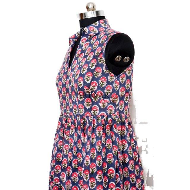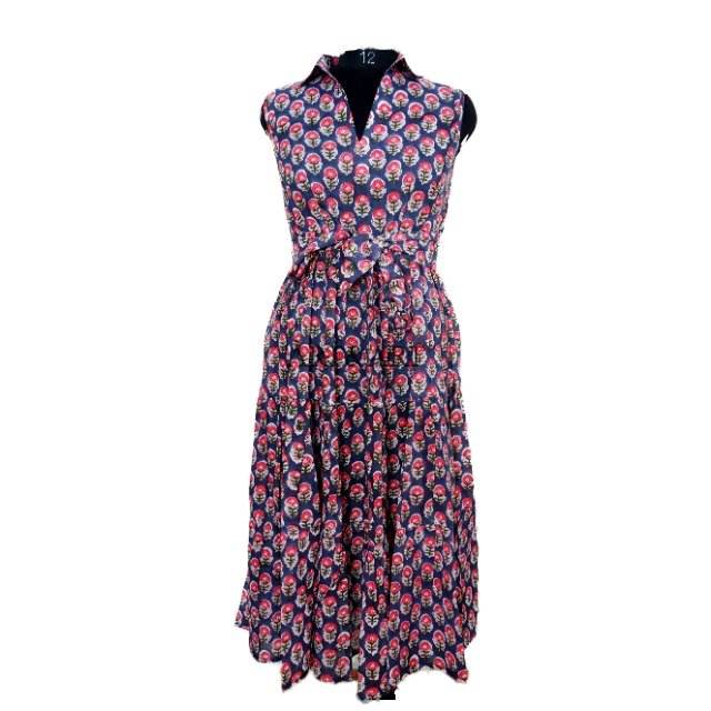 ชุดเดรสลำลองสำหรับผู้หญิง สไตล์ลำลอง/เป็นทางการ ความยาวปานกลาง ผ้าฝ้ายพิมพ์ลายด้วยมือ ไม่มีแขน ตกแต่งระบายหวานๆ ธรรมชาติ ซักได้