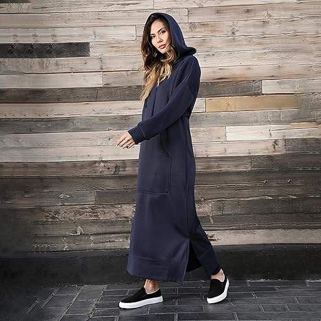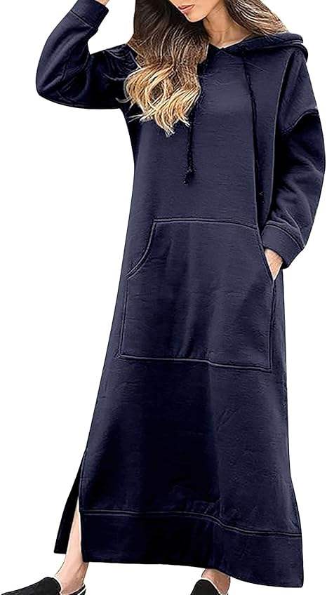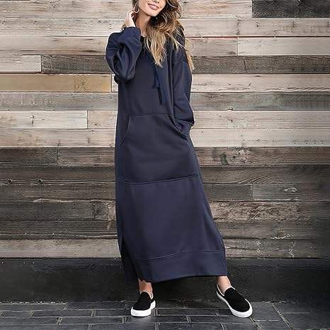เสื้อสเวตเชิ้ตแขนยาวแบบสวมสำหรับผู้หญิง ทรงแม็กซี่เดรส มีกระเป๋าจิงโจ้