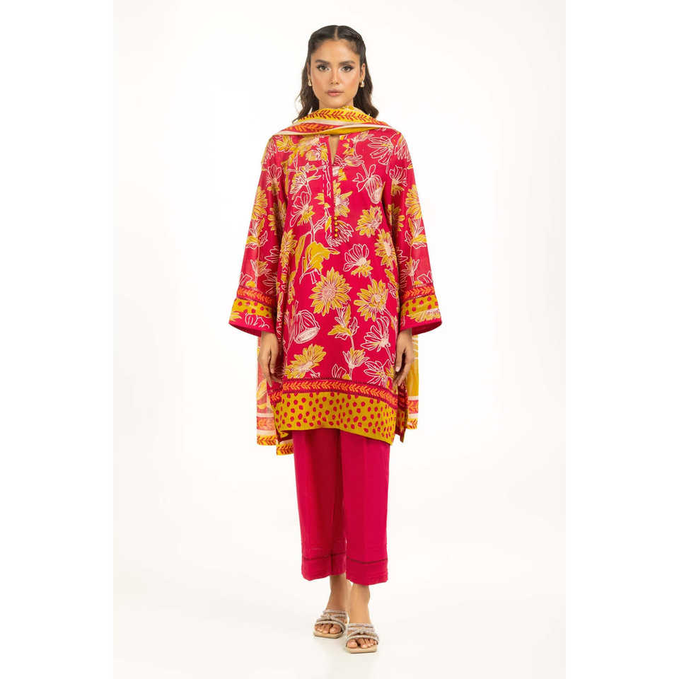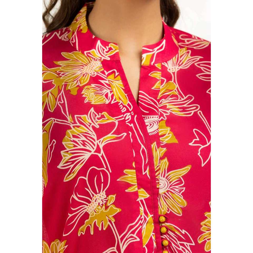 ชุดลำลองฤดูร้อนพิมพ์ลายผ้าลอนสีแดงสำหรับผู้หญิง