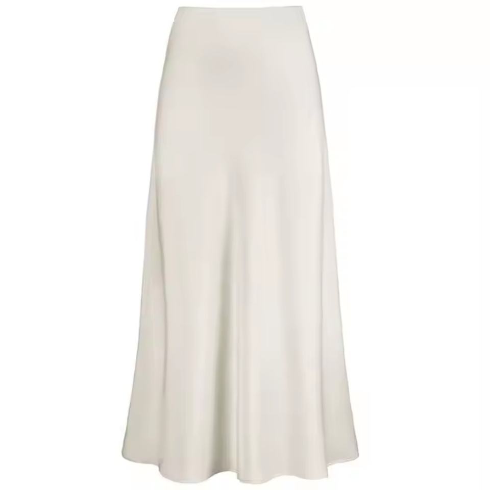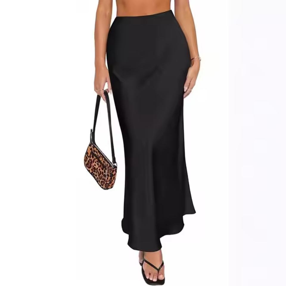 กระโปรงผ้าซาตินลำลองสำหรับผู้หญิง เอวสูง ทรงหางปลา ดีไซน์เรียบหรู เนื้อผ้าเนียนนุ่ม สไตล์แฟชั่นสำหรับสุภาพสตรี