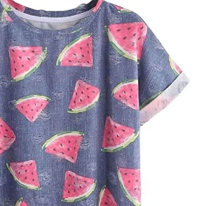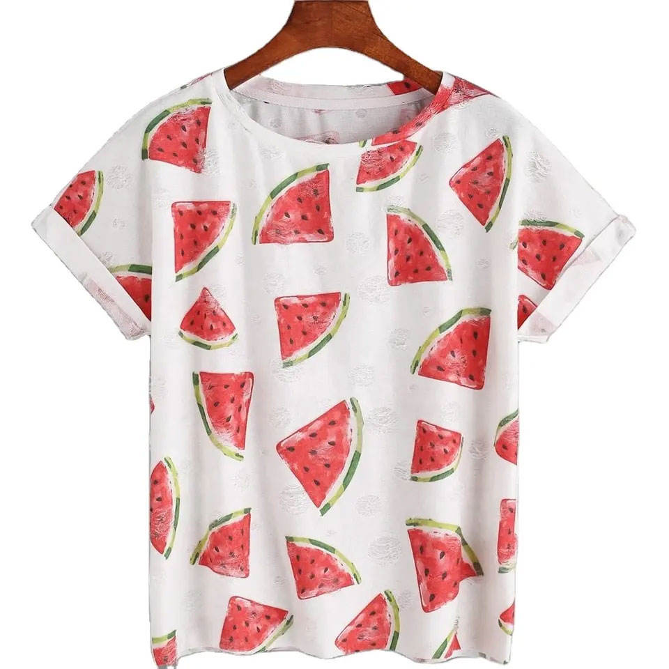 เสื้อยืดแขนสั้นลำลองสำหรับผู้หญิงผ้าฝ้ายพิมพ์ลายเต็มรูปแบบและเส้นใยไม้ไผ่ดีไซน์คลาสสิก