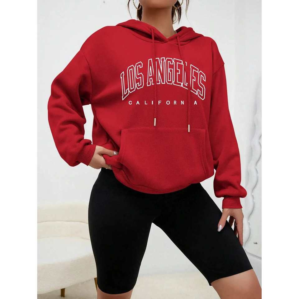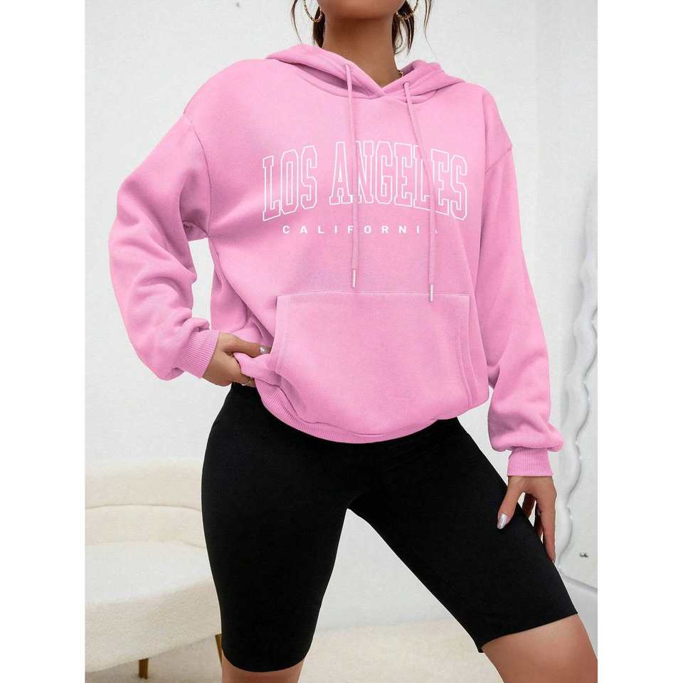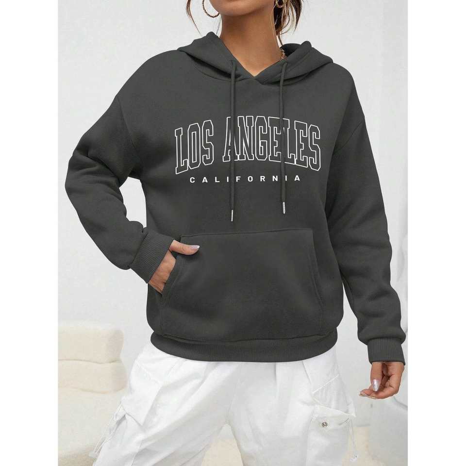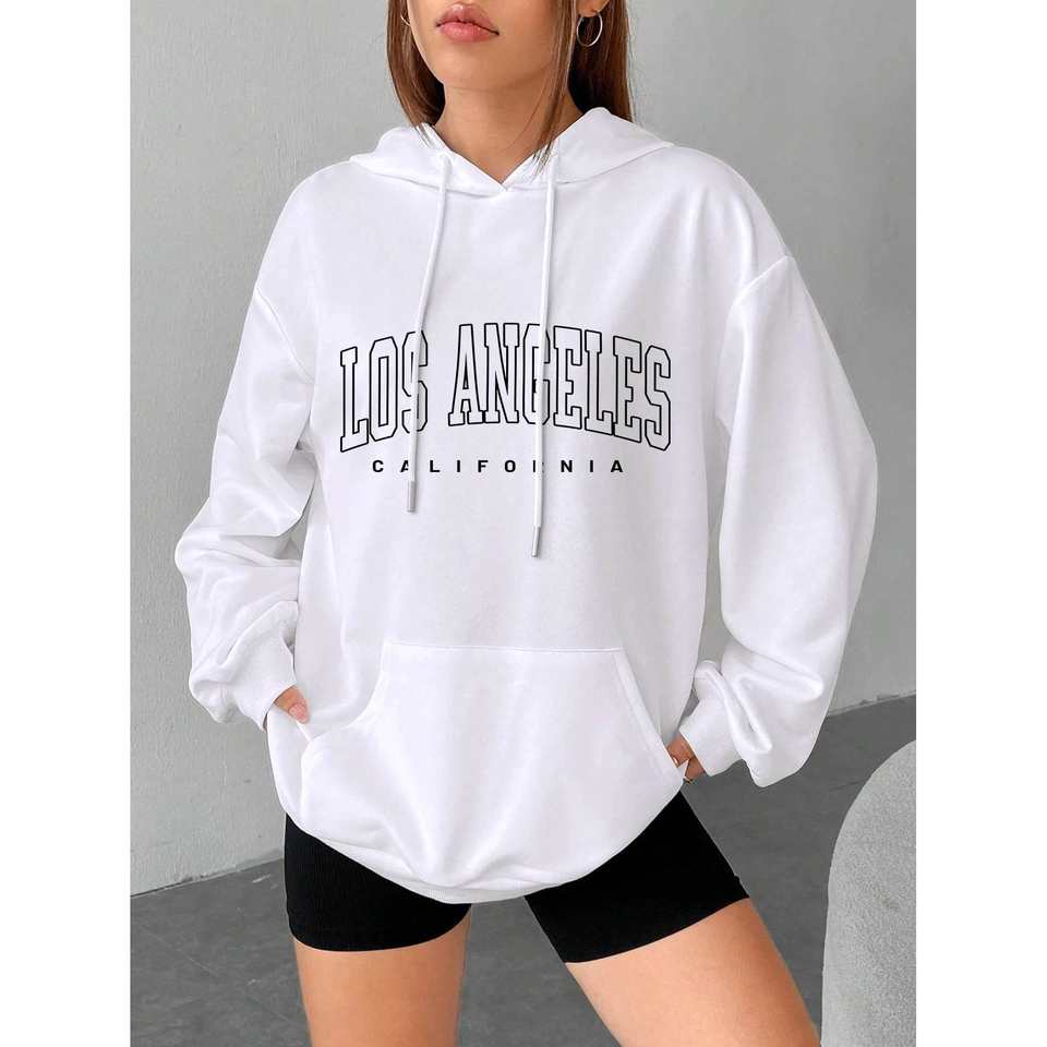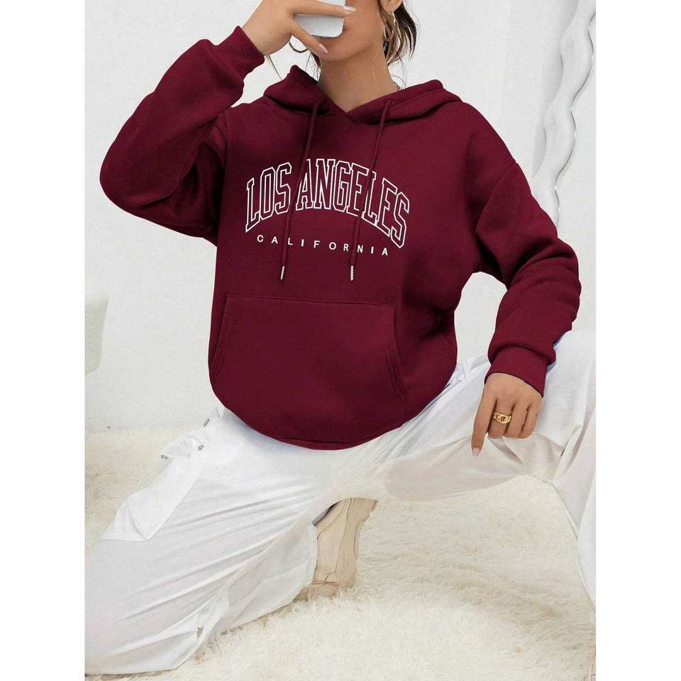 Women's Casual Silk Fleece Hoodie O-Neck Long Sleeve Autumn Hoody Los Angeles Art Letter Design Stand Loose Fit XS Hip Hop Style
