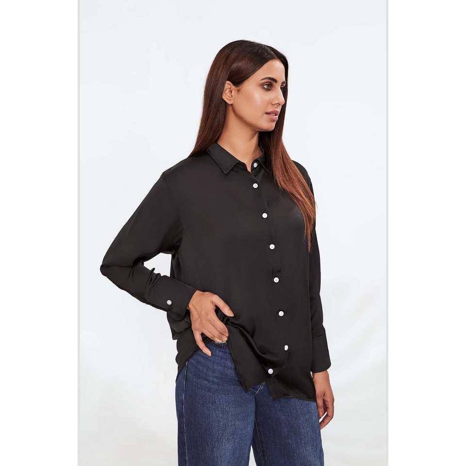 เสื้อไหมผู้หญิงลำลองสีดำ