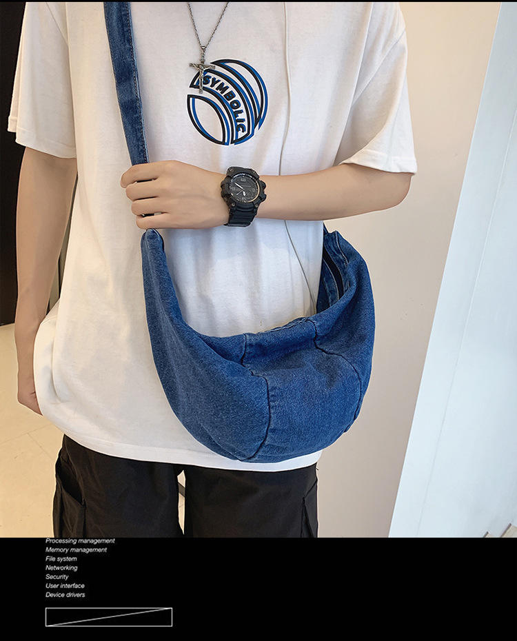 กระเป๋าคาดอกผ้ายีนส์ขนาดใหญ่กระเป๋าคาดอกสไตล์สตรีท