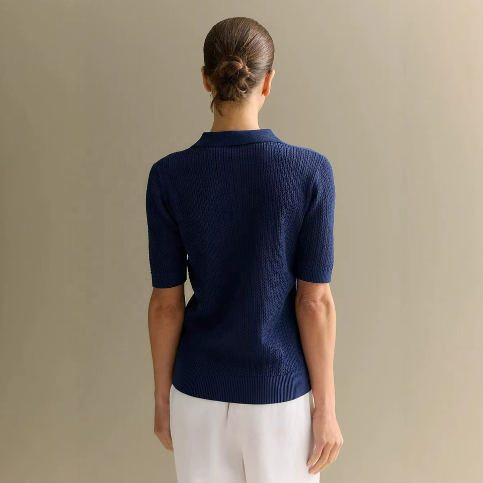 เสื้อสเวตเตอร์ถักคอเต่าแขนสั้นทรงเข้ารูปลำลองสำหรับผู้หญิง สีพื้น ระบายอากาศได้ดี ติดกระดุมเม็ดเดียว เหมาะสำหรับฤดูร้อน