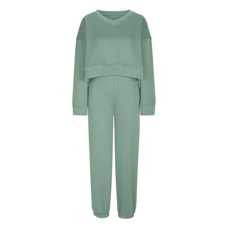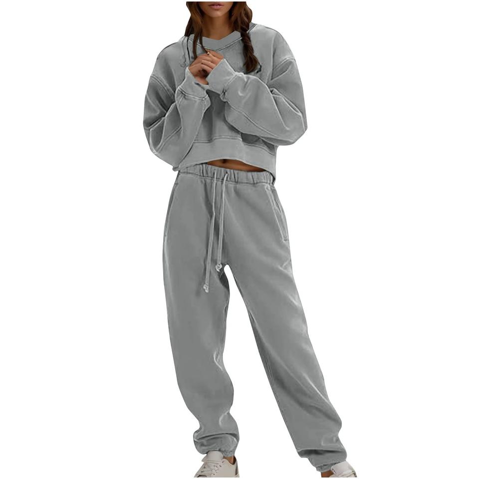 ชุดวิ่งออกกำลังกายแขนยาว2ชิ้นพร้อมไหล่ตกและชุดวอร์มลำลองของผู้หญิง