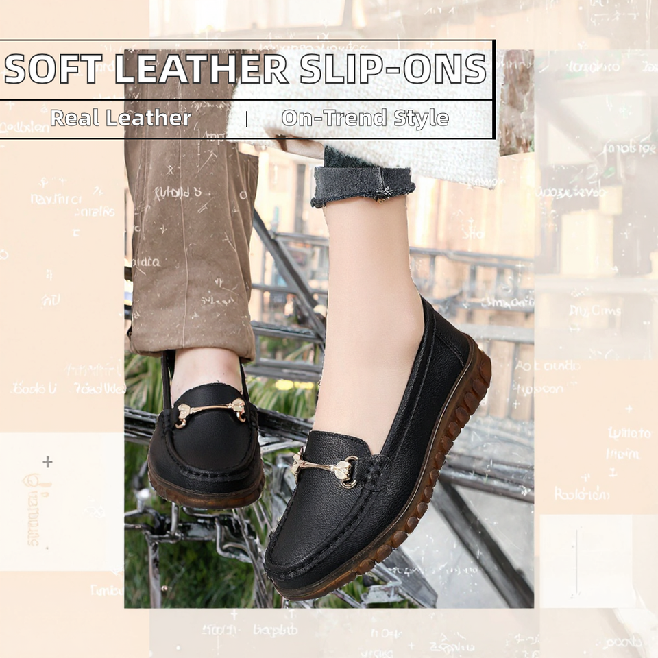 รองเท้าสวมแบบสบายๆ สำหรับผู้หญิง ดีไซน์หนังนิ่ม พื้นเรียบ สีผสม พื้นรองเท้า PVC แฟชั่นฤดูใบไม้ผลิและฤดูใบไม้ร่วง เหมาะสำหรับกิจกรรมกลางแจ้ง
