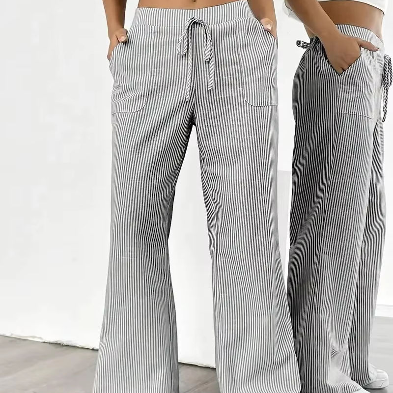 กางเกงไขว้ผ้าแคนวาสสำหรับผู้หญิงลำลองมีกระเป๋าคาดเอวสูงมีเชือกผูกเอวทรงหลวมมีกระเป๋าคาดเอวขนาดใหญ่พิเศษสำหรับฤดูร้อน