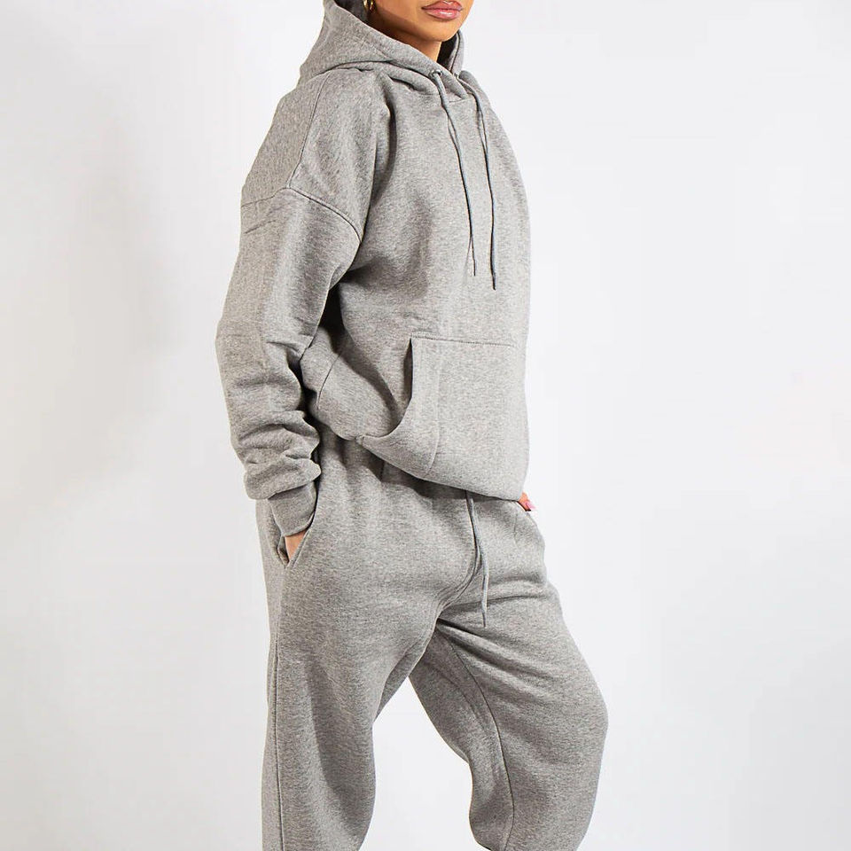 ชุดวอร์มลำลองแบบมีฮู้ดสำหรับผู้หญิง ผ้าเนื้อนุ่ม น้ำหนักเบา เป็นมิตรกับสิ่งแวดล้อม เหมาะสำหรับออกกำลังกายและวิ่งจ๊อกกิ้ง แบบ 2 ชิ้น รับผลิตแบบ OEM