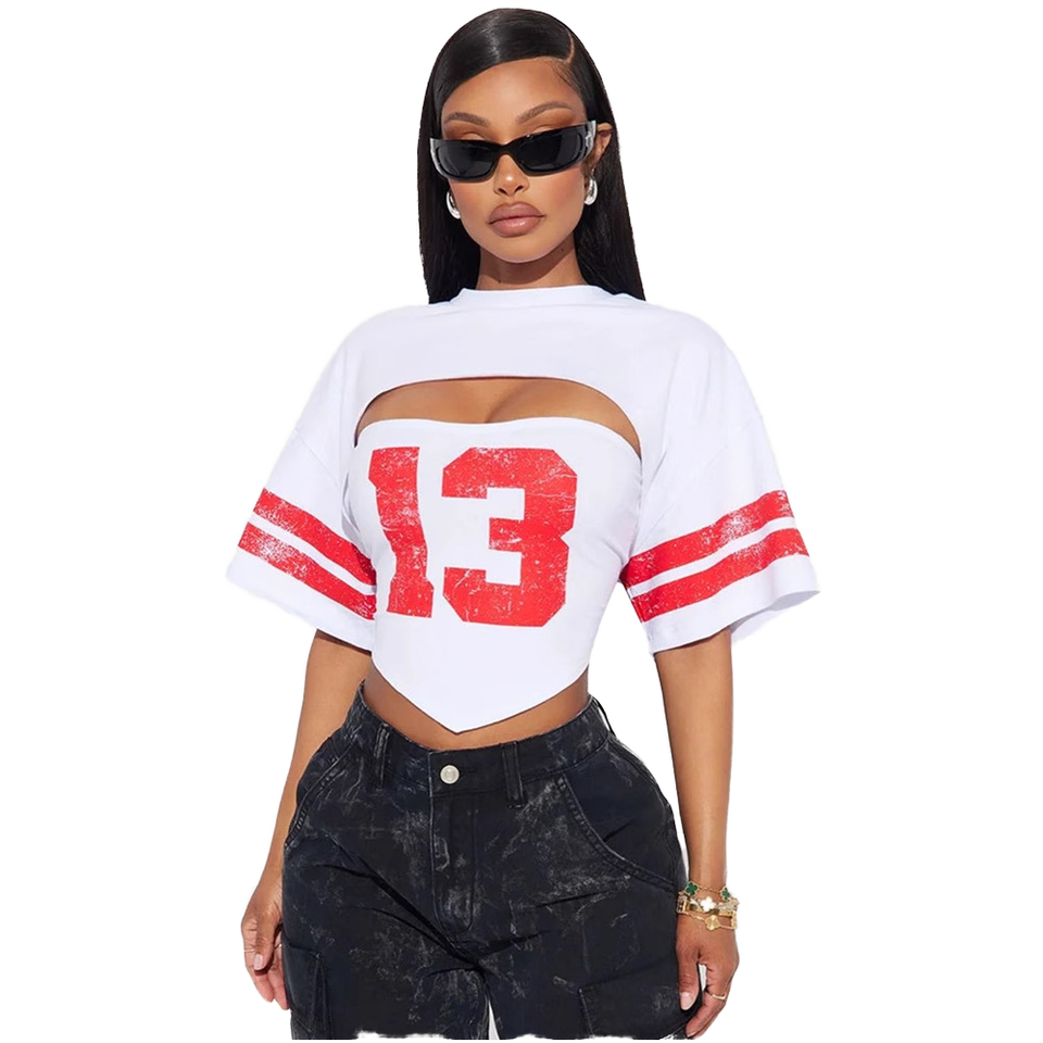 เสื้อยืดแขนสั้นระบายอากาศได้ดีพิมพ์ลายตัวอักษรเสื้อเอวลอยแนววินเทจสำหรับผู้หญิงใส่เล่นกีฬาลำลองเสื้อพิมพ์ลายกราฟิก