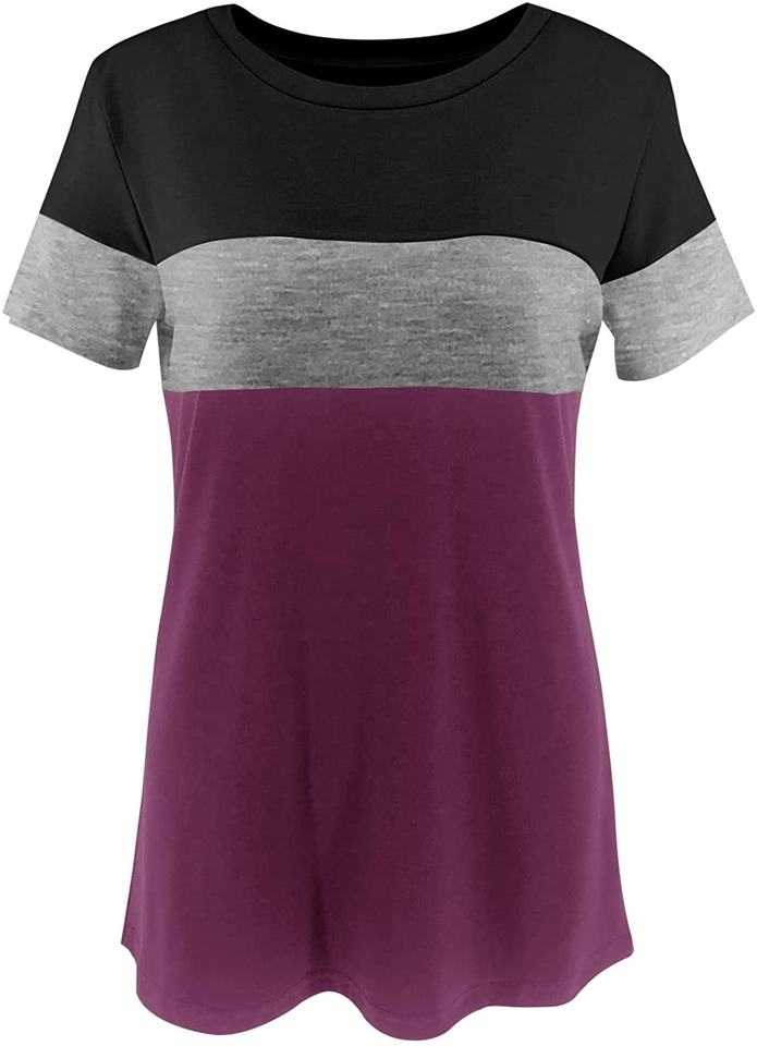 เสื้อยืดแขนสั้นแฟชั่นสตรีทแวร์ลำลองสำหรับผู้หญิง คอวี แต่งสีบล็อก หลากสี ทรงหลวม ประดับลายปัก เหมาะสำหรับฤดูร้อน
