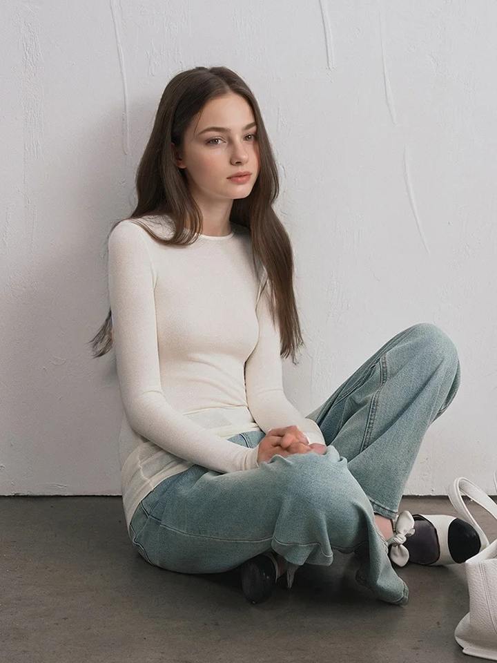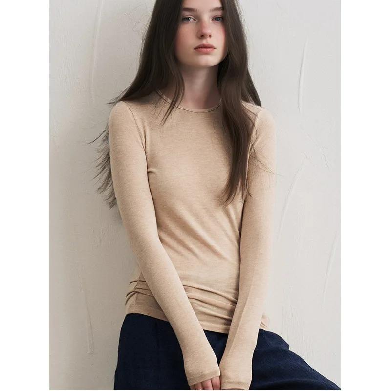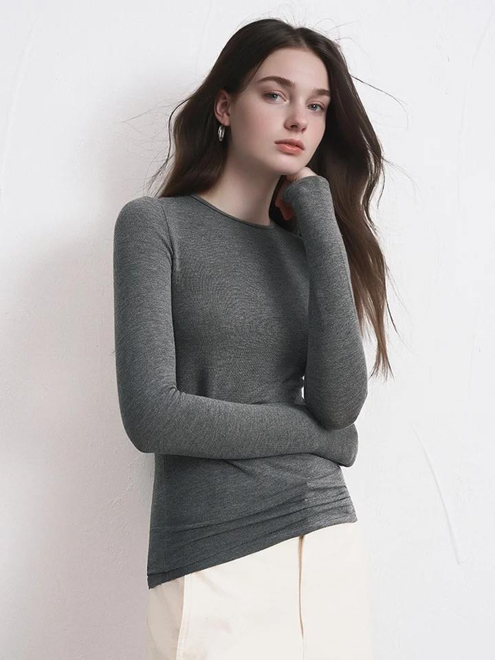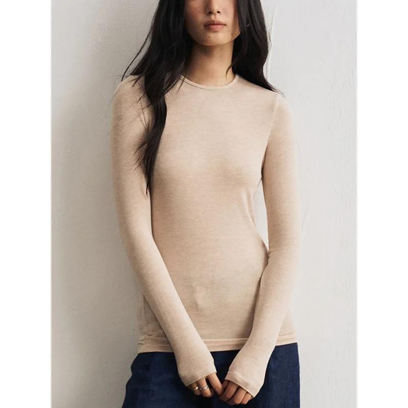 เสื้อยืดลำลองสไตล์ผู้หญิงโมดอลเข้ารูปสำหรับฤดูใบไม้ร่วงฤดูหนาวเสื้อใส่ได้ถึงก้นเสื้อนุ่มใส่สบายผิวสีทึบ