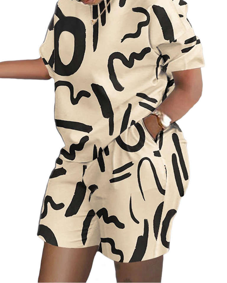 ชุดเสื้อกางเกงขาสั้นผ้าสองชิ้นแบบลำลองสำหรับผู้หญิงชุดเสื้อพิมพ์ลายตัวอักษรสำหรับฤดูร้อน