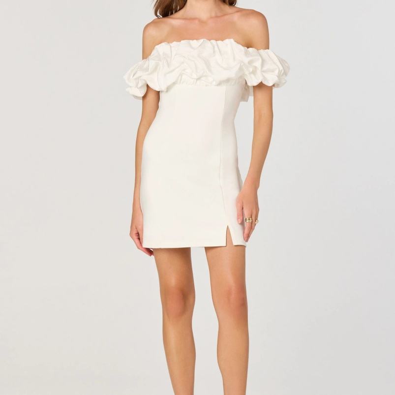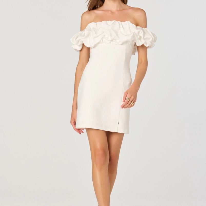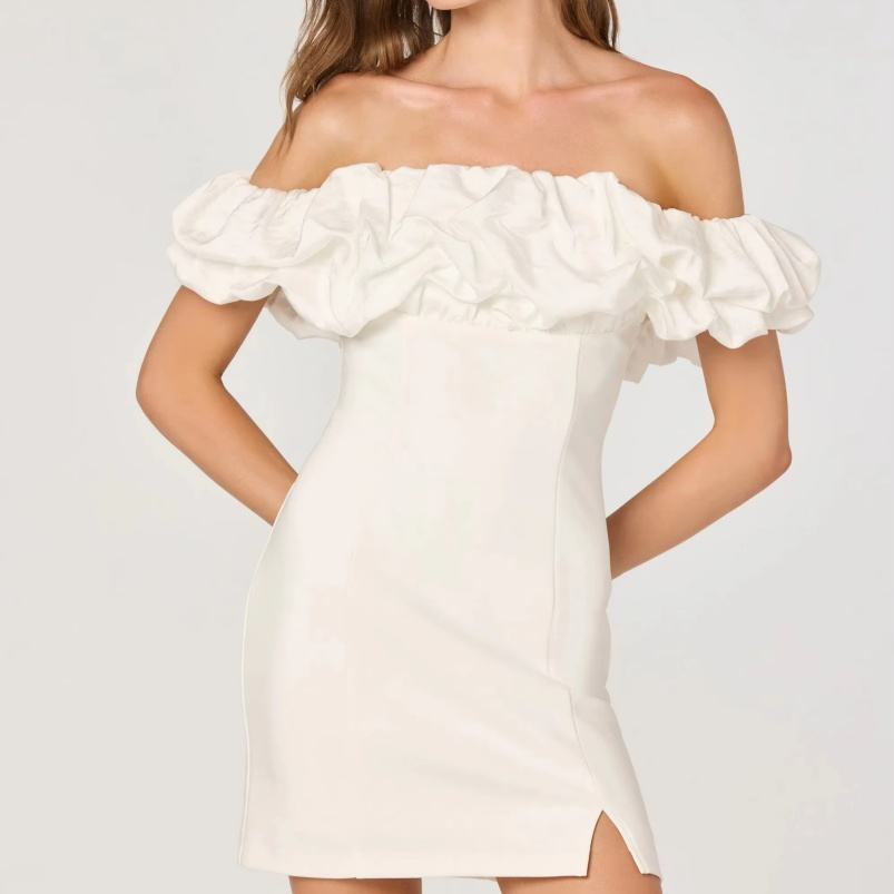 เดรสสีขาวแบบลำลองของผู้หญิงชุดเดรสแบบสั้นคอเดียวระบายอากาศได้ดีเข้ารูปสไตล์หวานๆแบบสายรัดเอวแบบธรรมชาติ