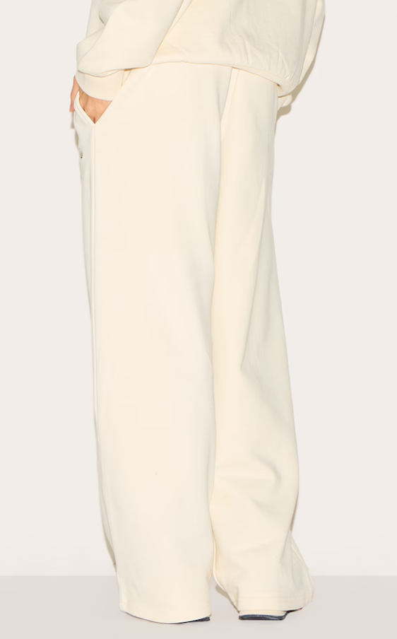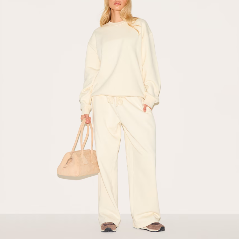 ชุดวอร์ม2ชิ้นแบบลำลองสำหรับผู้หญิง, ชุดวอร์มคอกลมคอกลมสีล้วนพร้อมเชือกรัดขากว้างทำจากผ้าคอตตอนเทอร์รี่