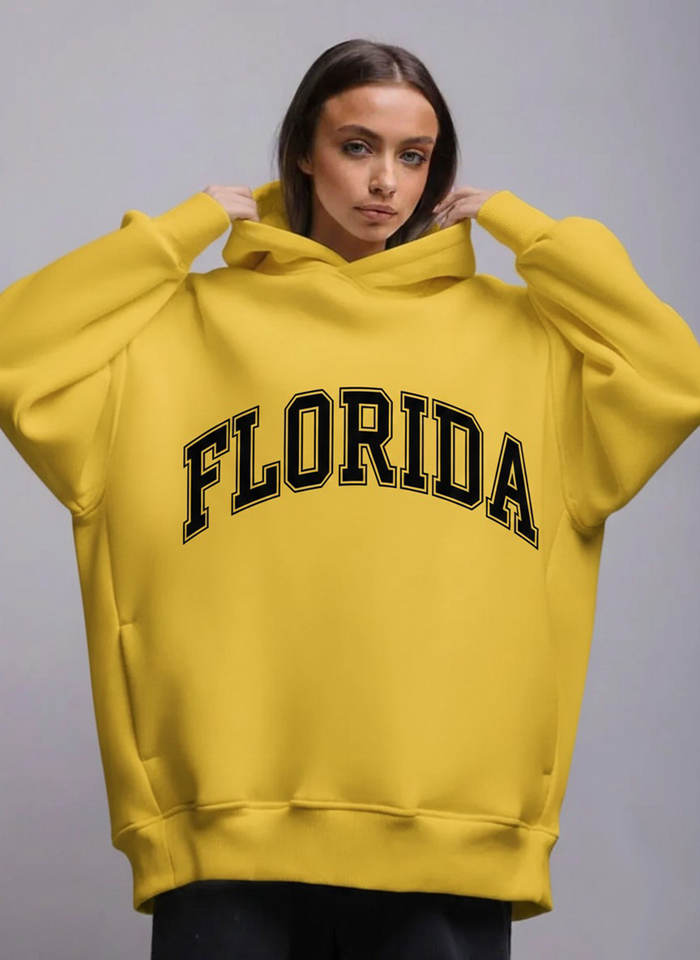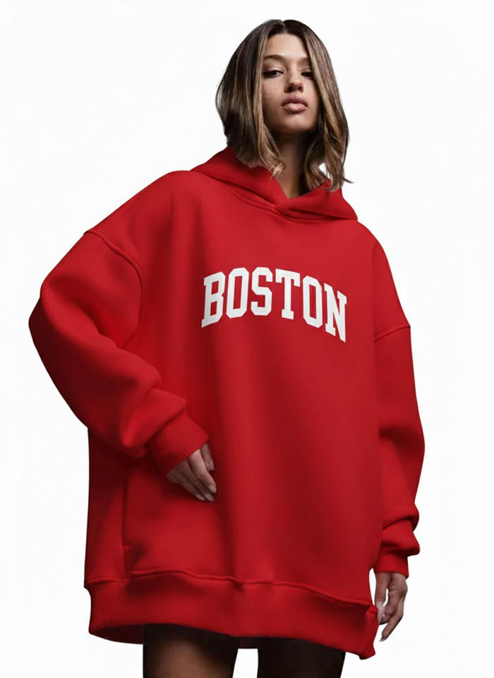 เสื้อฮู้ดผู้หญิงลำลองสำหรับฤดูหนาว ผ้าฟลีซทอ 2 ชิ้น พิมพ์ลายด้านหน้า ไหล่ตก คอกลม นุ่ม ระบายอากาศได้ดี สวมใส่สบาย
