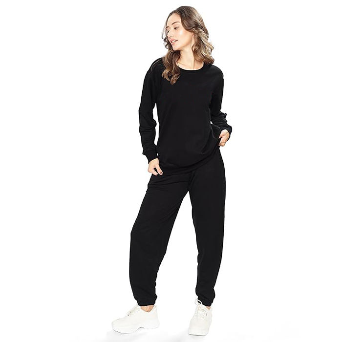 ชุดจ็อกเกอร์กีฬาฤดูหนาวลำลองของผู้หญิงผ้าฝ้ายพิมพ์ลายแขนยาวแบบดึงได้กระดุมติดโบว์ล้างมือ