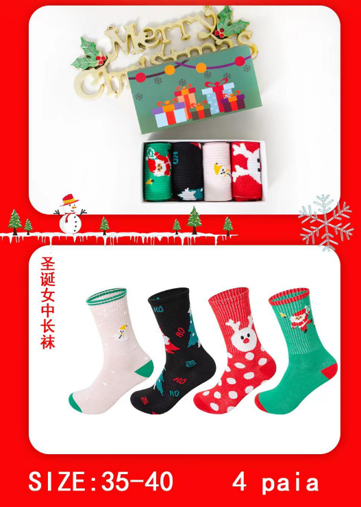 ถุงเท้าสำหรับใส่ในกล่องของขวัญวันคริสต์มาสของผู้หญิงผ้าไนลอนระบายอากาศได้มีขนาดเดียวลายปักน่ารักผ้าแจ็คการ์ดความยาวถึงข้อเท้าแบบถัก