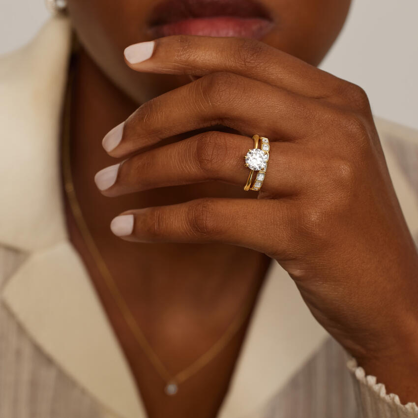 แหวนหมั้นและแต่งงานสำหรับผู้หญิง ดีไซน์คลาสสิกไม่ซ้ำใคร ชุบทองคำขาว 10k ประดับโมอิสซาไนต์ เหมาะสำหรับงานปาร์ตี้ วันครบรอบ และโอกาสพิเศษ