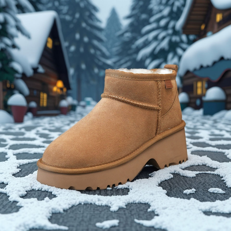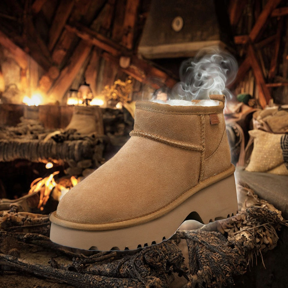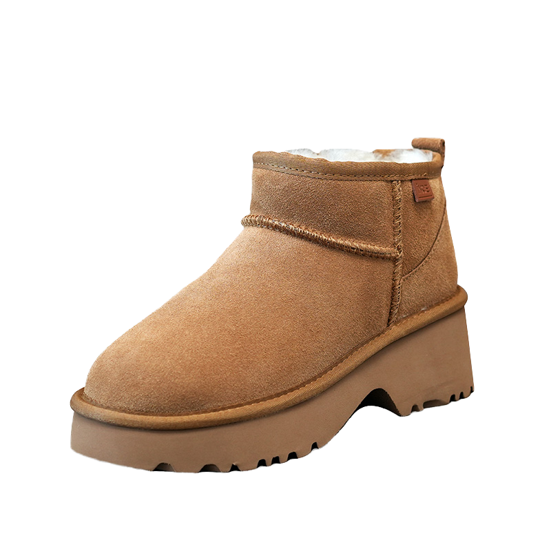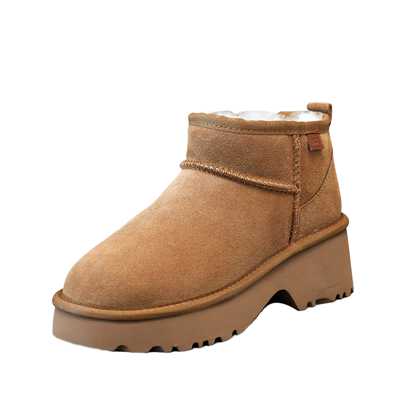 รองเท้าบูทลุยหิมะหุ้มข้อแบบคลาสสิกของผู้หญิงหนังวัวแท้พื้นเรียบนางเงือกขนแกะแท้ซับในกันหนาวสำหรับฤดูหนาวฤดูใบไม้ร่วง