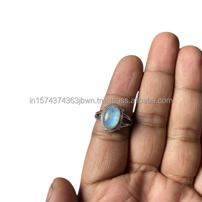 แหวนเงินแท้ 925 ประดับพลอยมูนสโตนทรงรี ดีไซน์คลาสสิกสำหรับผู้หญิง เหมาะสำหรับงานหมั้น งานแต่งงาน และงานเลี้ยง
