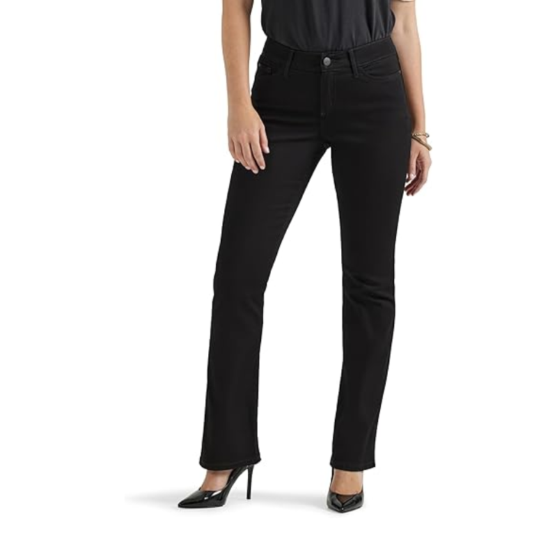 กางเกงยีนส์ทรงบูทคัทคลาสสิกสำหรับผู้หญิง เทคโนโลยี Flex Motion ระบายอากาศได้ดี ทรงหลวม สไตล์ลำลอง ลายพิมพ์ สำหรับฤดูหนาว ไซส์ XL โลโก้ที่เอว