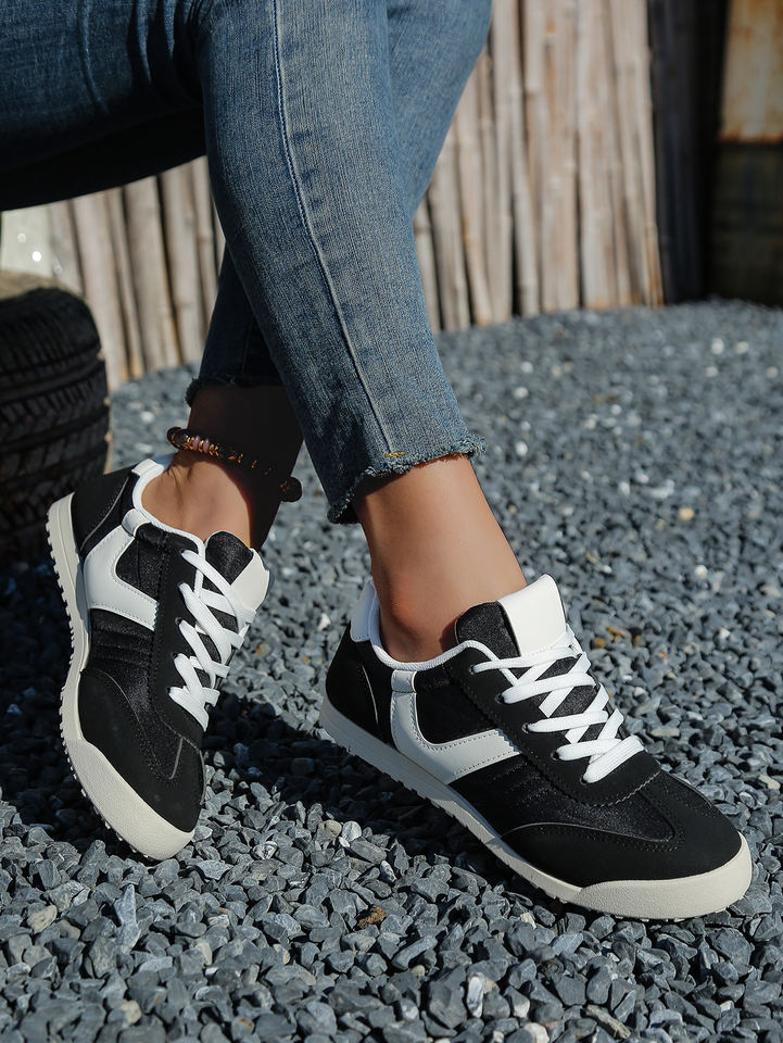 รองเท้าผ้าใบลำลองแบบคลาสสิกของผู้หญิงพื้นในรองเท้ากีฬาทำจากยาง PU รองเท้ากีฬาสำหรับฤดูใบไม้ผลิฤดูร้อนฤดูใบไม้ร่วงฤดูหนาวมีสายรัดปิดสภาพใหม่
