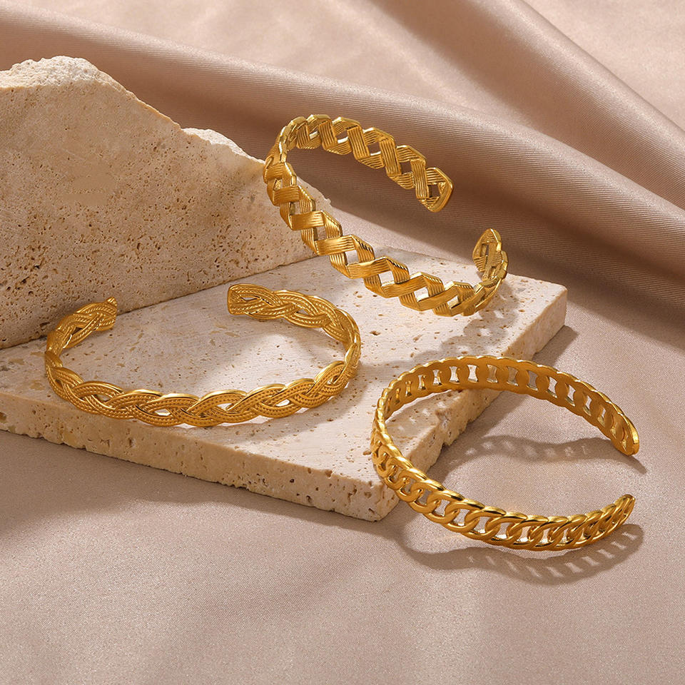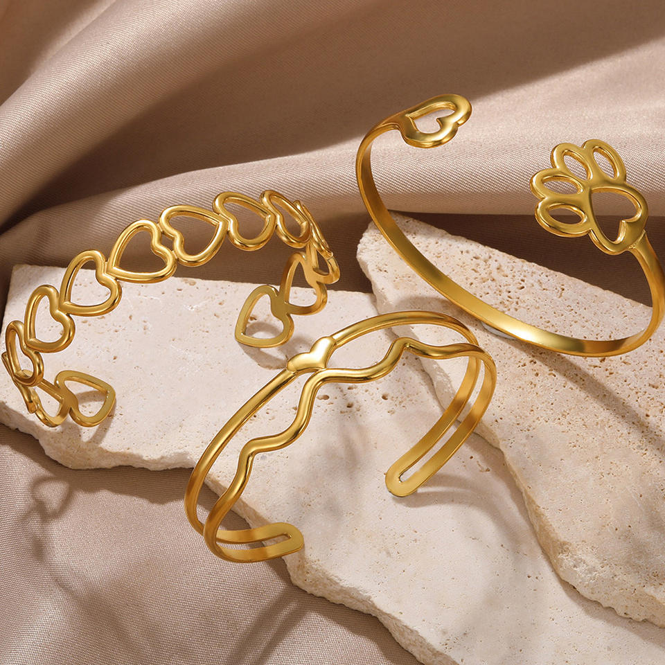 กำไลข้อมือสแตนเลสสตีลชุบทองคำขาวสำหรับผู้หญิง ดีไซน์หัวใจโปร่งแบบซ้อนได้ เหมาะสำหรับใส่ทุกวันและโอกาสพิเศษ เช่น วันครบรอบ
