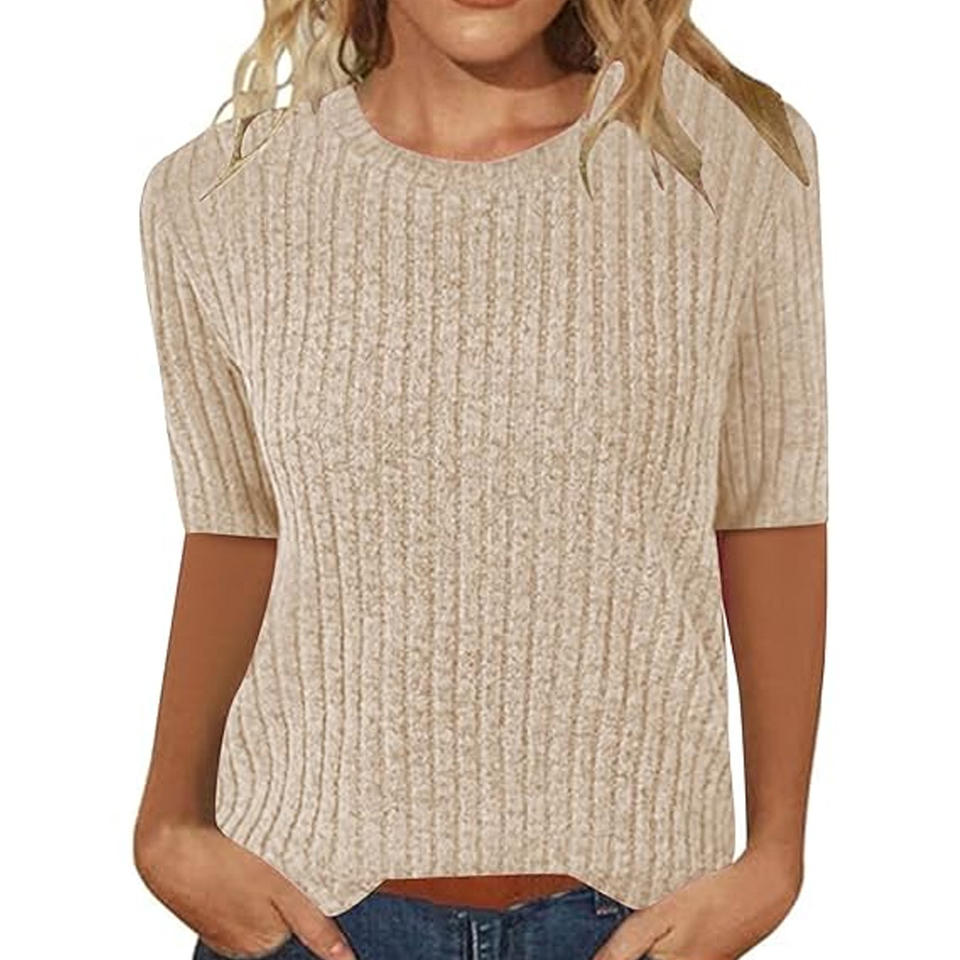 เสื้อยืดผู้หญิงคอกลมแบบคลาสสิก ผ้าถักเนื้อนุ่ม ระบายอากาศได้ดี เป็นมิตรกับสิ่งแวดล้อม เหมาะสำหรับฤดูร้อน ยืดหยุ่นได้
