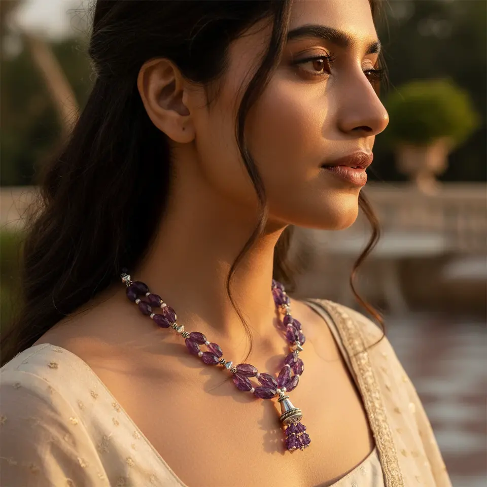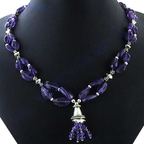 สร้อยคอประดับพู่ห้อยพลอยอเมทิสต์แบบคลาสสิกสำหรับผู้หญิง ประดับด้วยเงิน ควอตซ์ ไข่มุก เทอร์ควอยซ์ ปะการัง รูปทรงตัวเลข