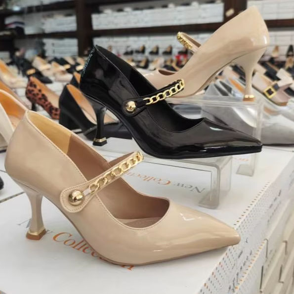 รองเท้าส้นเข็มแบบคลาสสิกสำหรับผู้หญิง ปลายแหลม ประดับคริสตัล ส้นสูง 7 ซม. สำหรับไซส์ 36-40 ผลิตในตุรกี