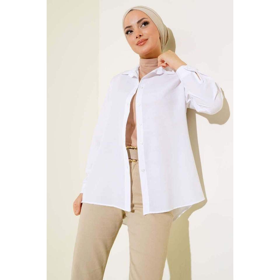 เสื้อเชิ้ตสีขาวด้านหน้าสั้นผู้หญิงคลาสสิก