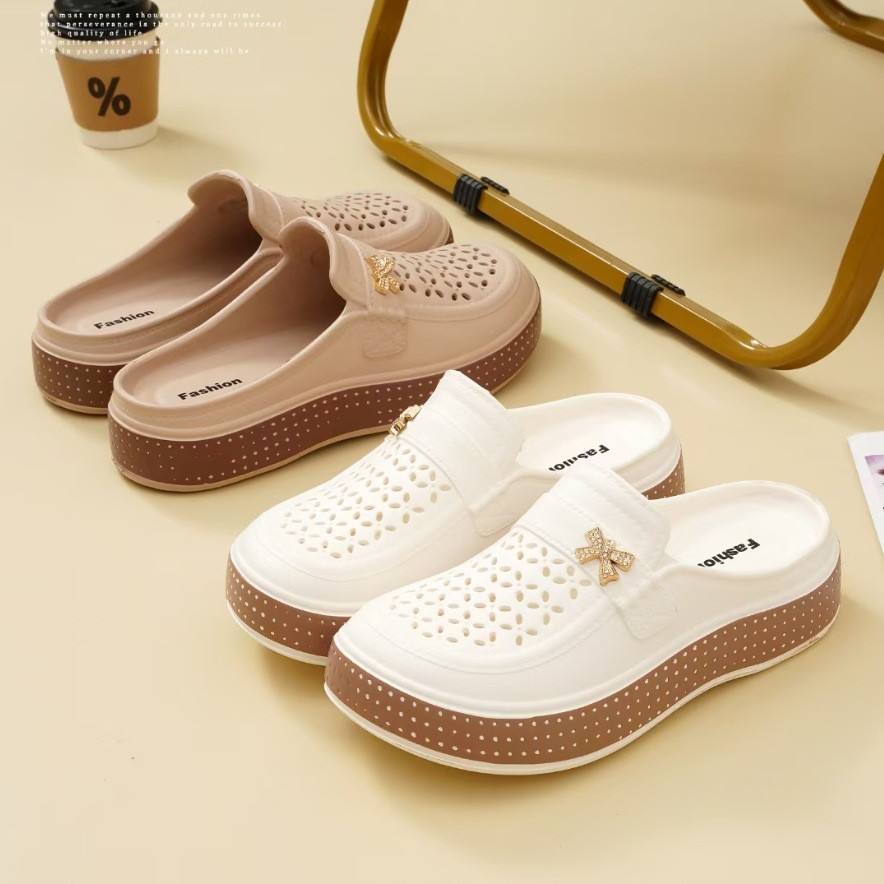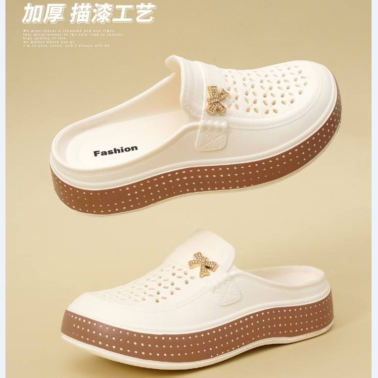 รองเท้าแตะสตรีแบบสวม พื้นหนา ระบายอากาศได้ดี วัสดุ EVA แบบเจาะรู ดีไซน์สีตัดกัน สไตล์ลำลอง