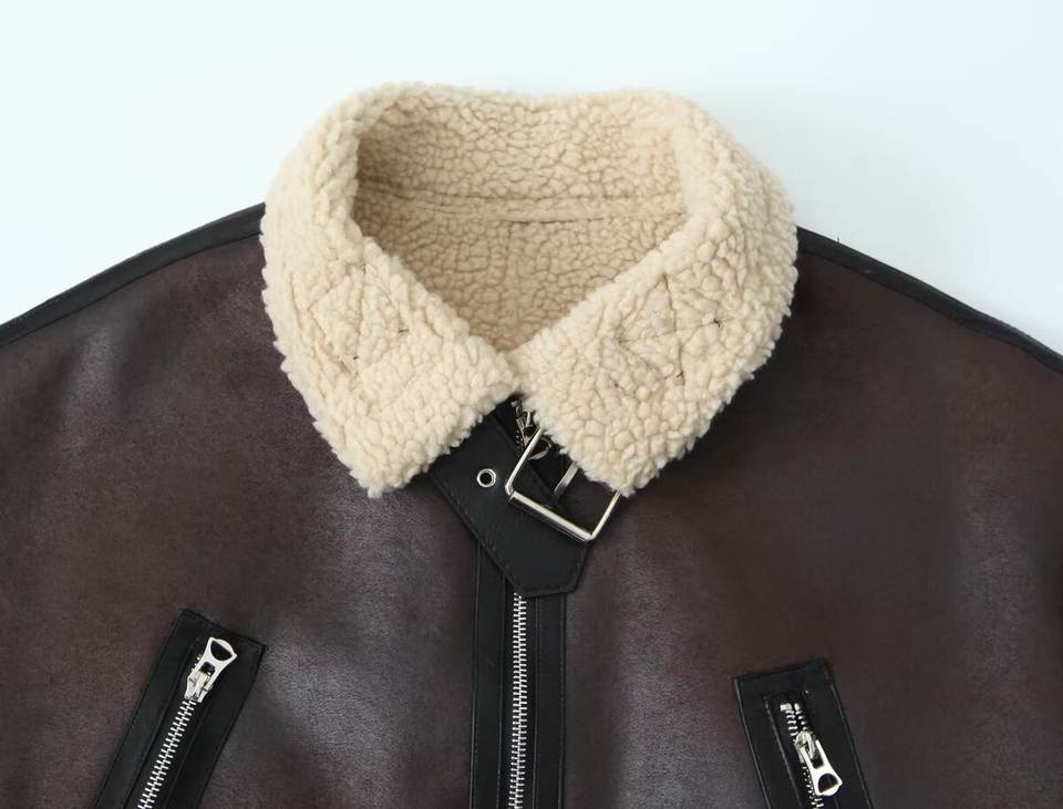 เสื้อแจ็คเก็ตแขนยาวคอปกแบบสั้นสองด้านมีซิปสีตัดกัน
