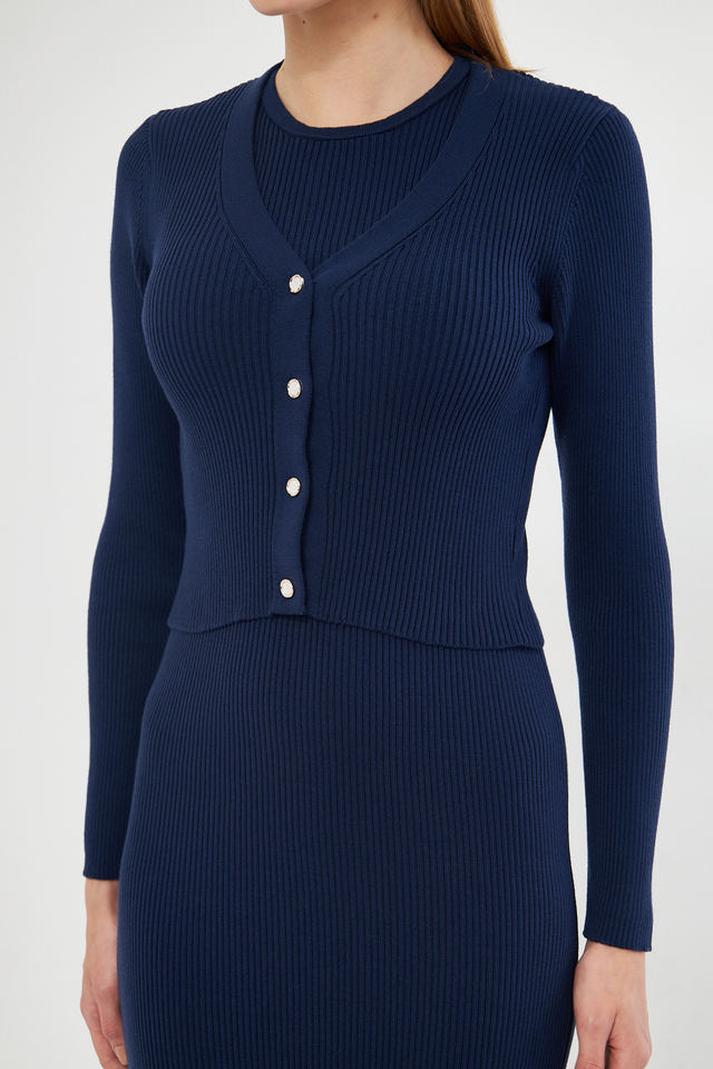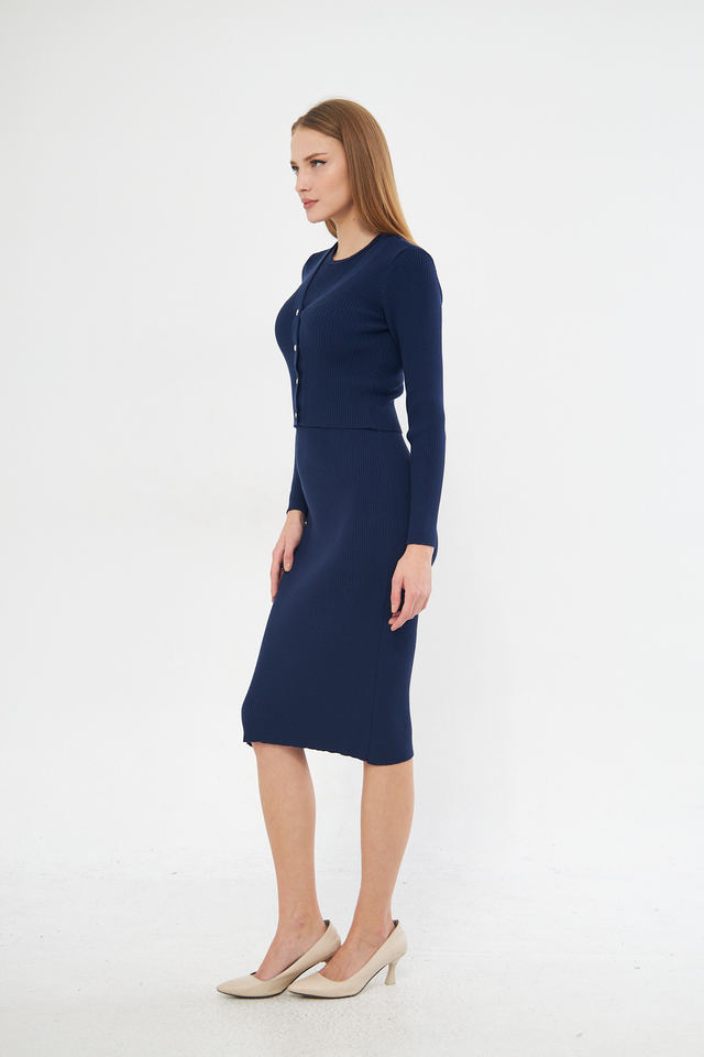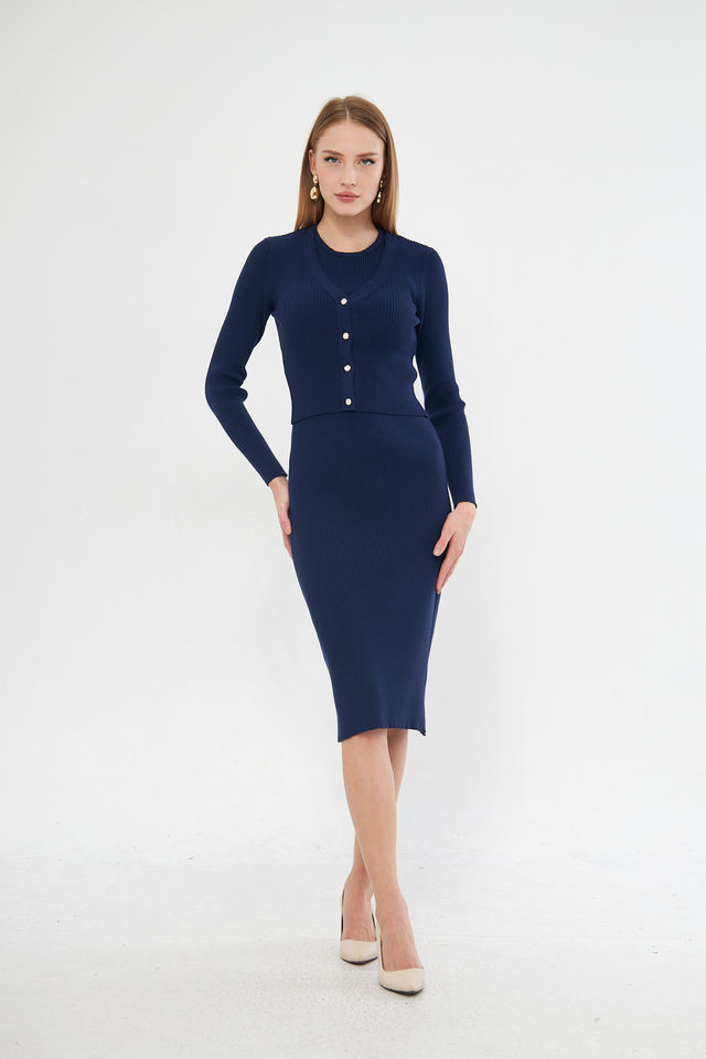 ชุดเดรสคาร์ดิแกนยาวปานกลางแบบมีกระดุมชุดเดรสถักมีสไตล์สำหรับใส่ทุกวันและสำนักงาน