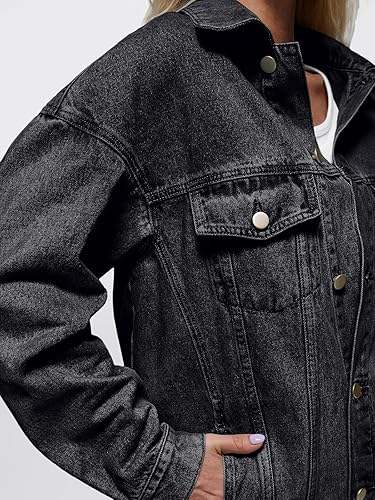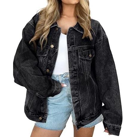 เสื้อผ้าผู้หญิง แฟชั่นใหม่ ดีไซน์สั่งทำพิเศษ สไตล์วินเทจ สีดำซีดแบบซันเฟด เสื้อแจ็คเก็ตยีนส์ผู้หญิงทรงโอเวอร์ไซส์ หลวม หนา