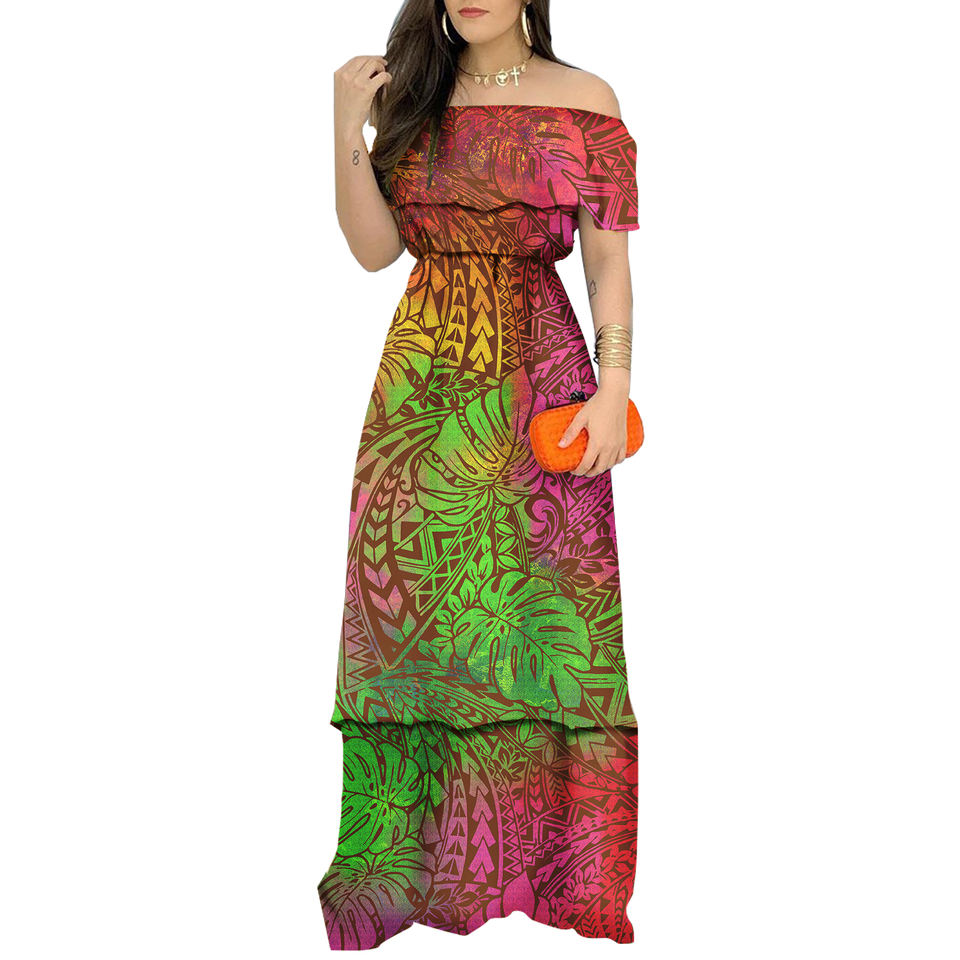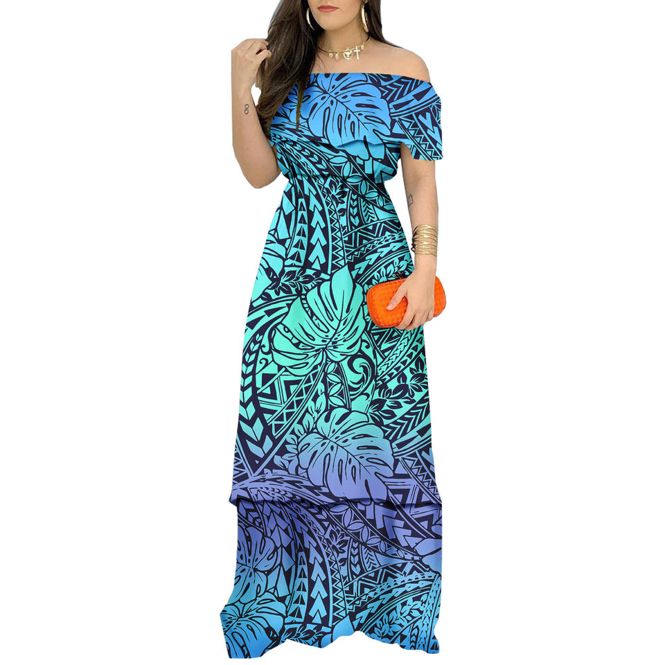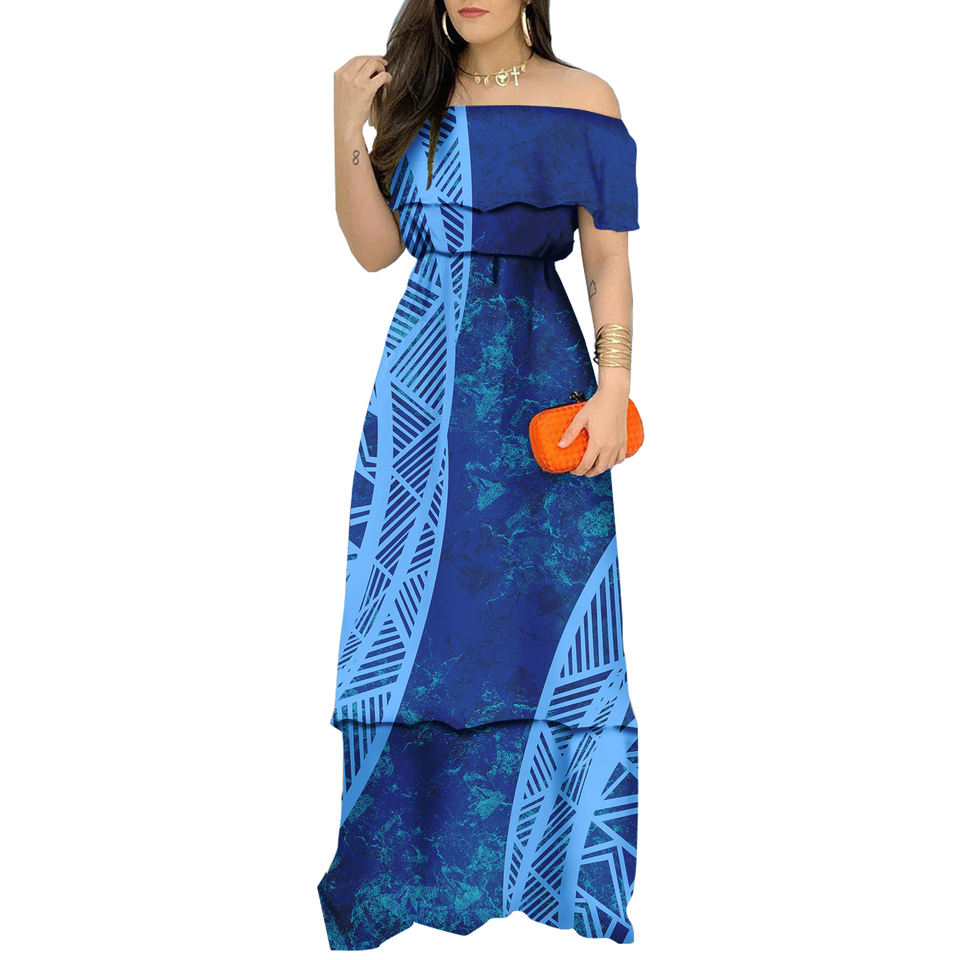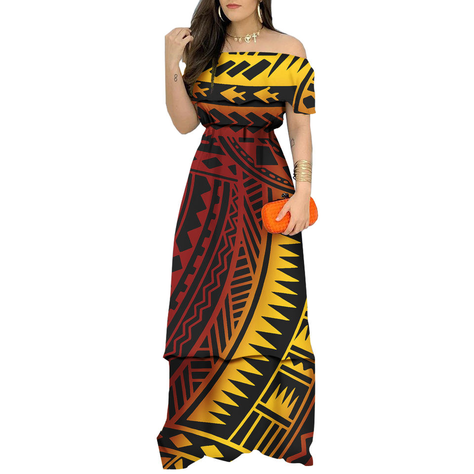 ชุดสตรีแบบซามัว ปูเลตาซี ลายศิลปะ ชุดสำหรับสาวอวบ ชุดเดรสแบบเกาะ ลายชนเผ่าโพลีนีเซียน แต่งระบาย ชุดวินเทจ