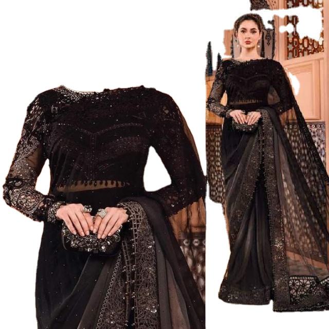 ชุดส่าหรีผ้าไหมผ้าจอร์เจียปักโลโก้ตามสั่งสำหรับงานแต่งงานและงานปาร์ตี้สีตามสั่ง