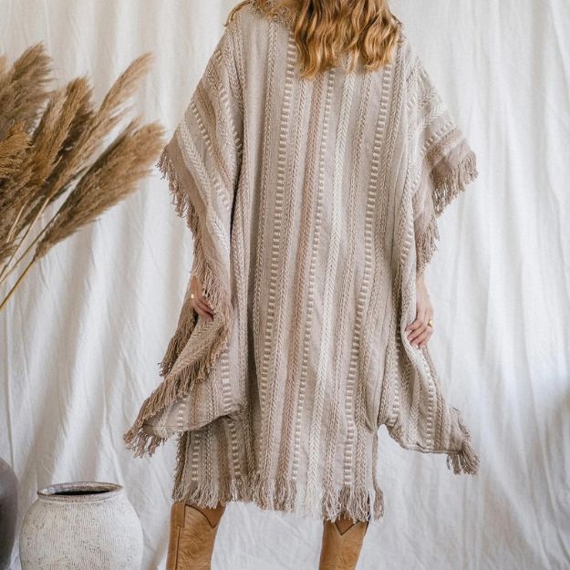 Women’s Coffee Fringe Kimono Cardigan Boho Festival Jacket Desert Rave OutfitTribal Wrap Coat Hippie Layering Piece